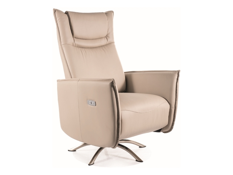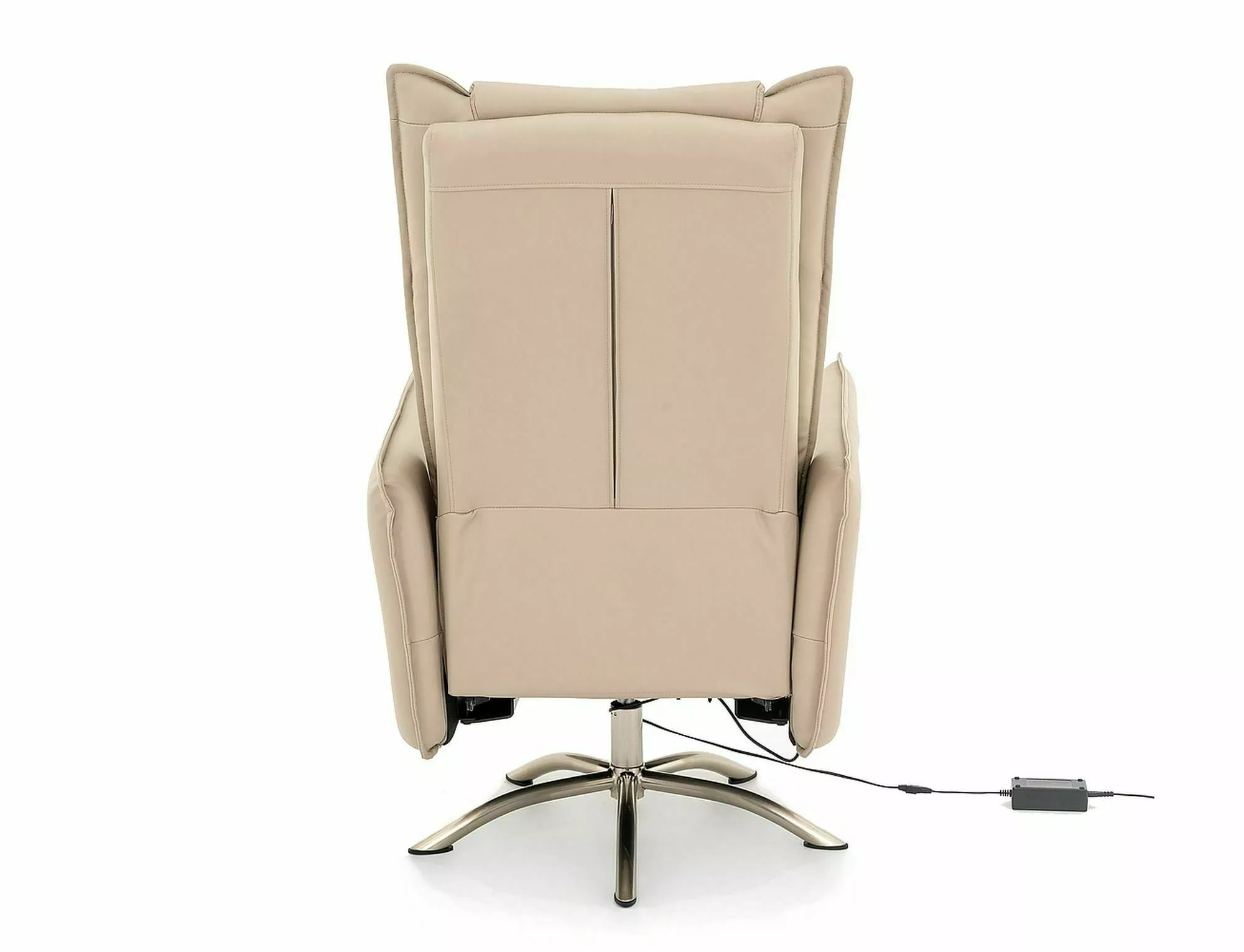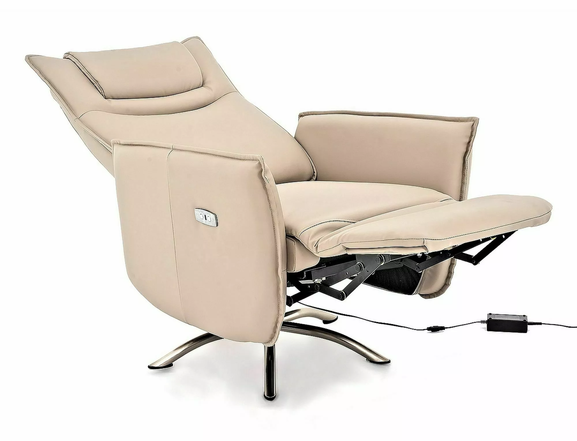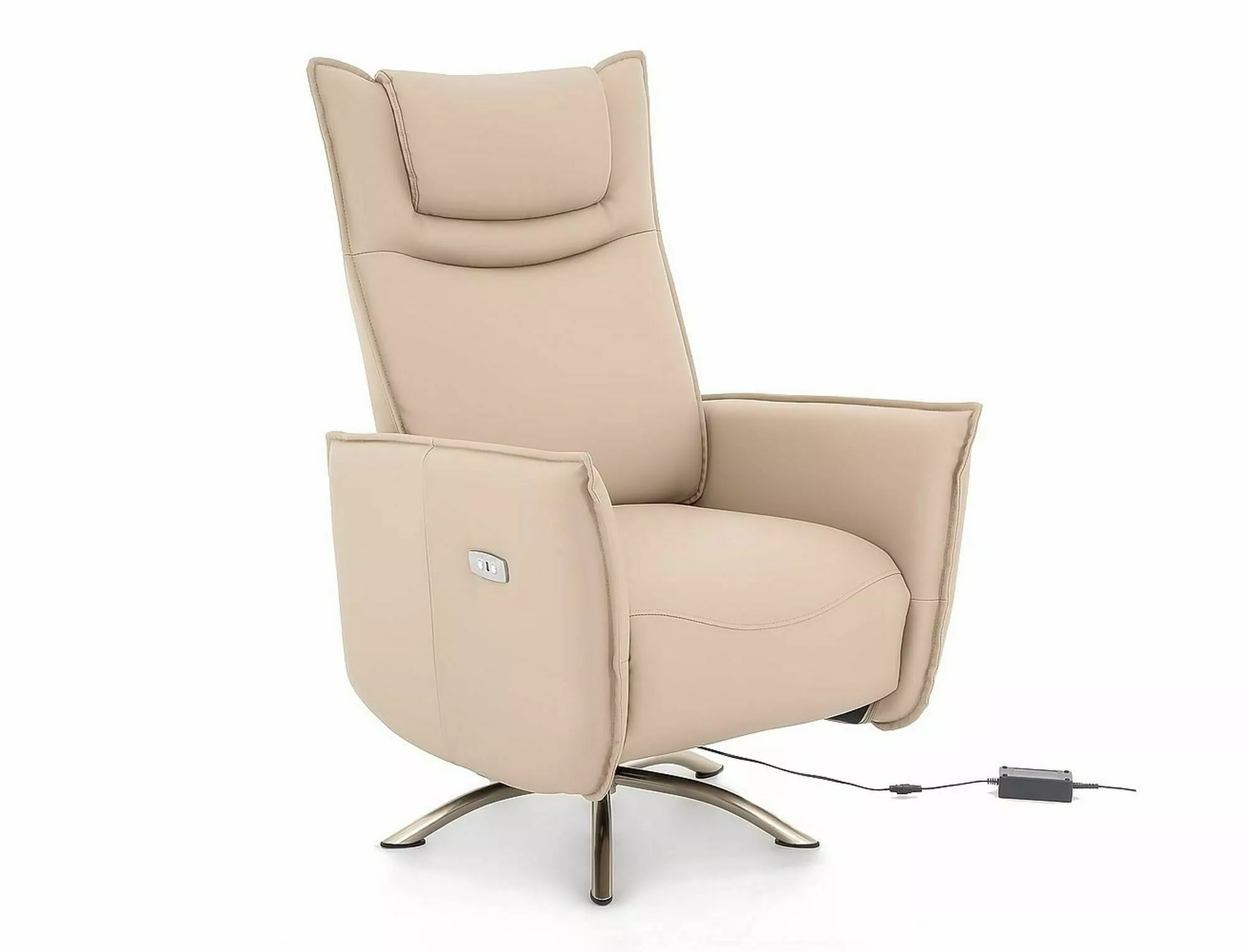 Кресло с электроприводом наклона, искусственная кожа, цвет: бежевый, обивка 216. Основание из матовой стали позволяет вращать кресло на 360 градусов, панель управления оснащена USB-портом.