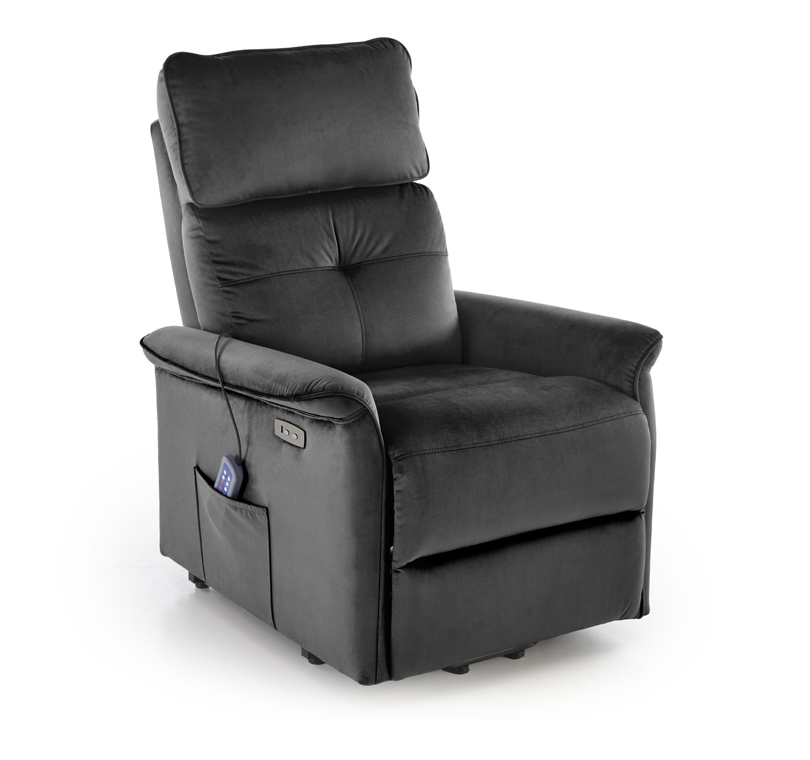 размеры: 80/108-90/90-160/51-52 см, электрическое кресло/функция подъема/функция массажа/кнопка USB, материал: бархатная ткань — BLUVEL, цвет: черный#19