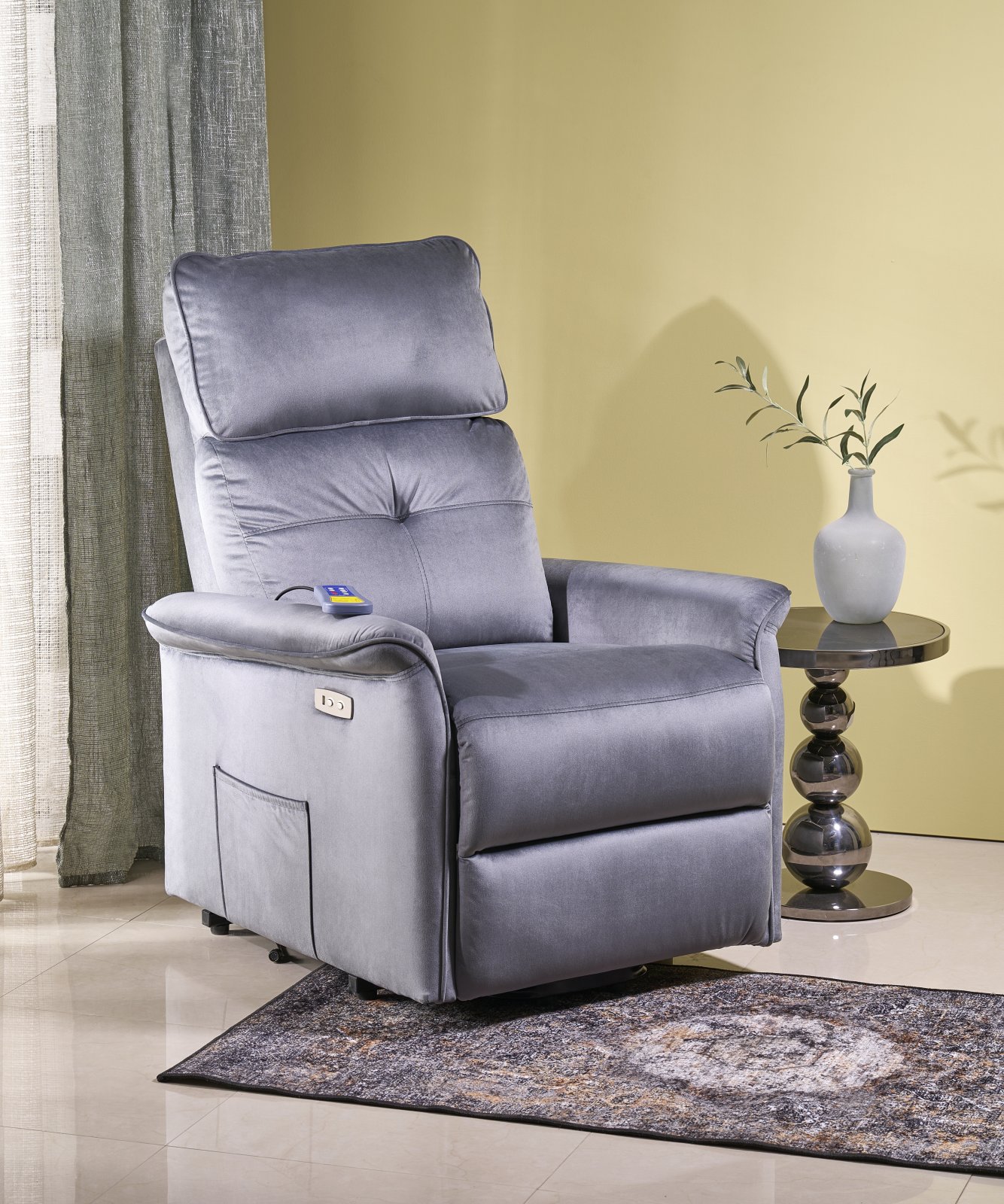 размеры: 80/108-90/90-160/51-52 см, электрическое кресло / функция подъема / функция массажа / кнопка USB, материал: бархатная ткань — BLUVEL, цвет: серый #14