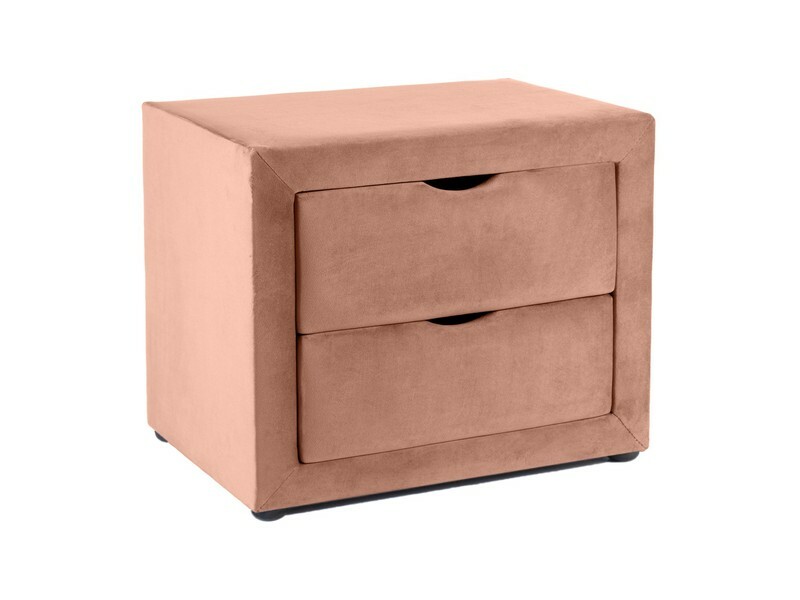 Прикроватная тумбочка с 2 ящиками, ткань бархат, цвет: Bluvel 52 — античный розовый.