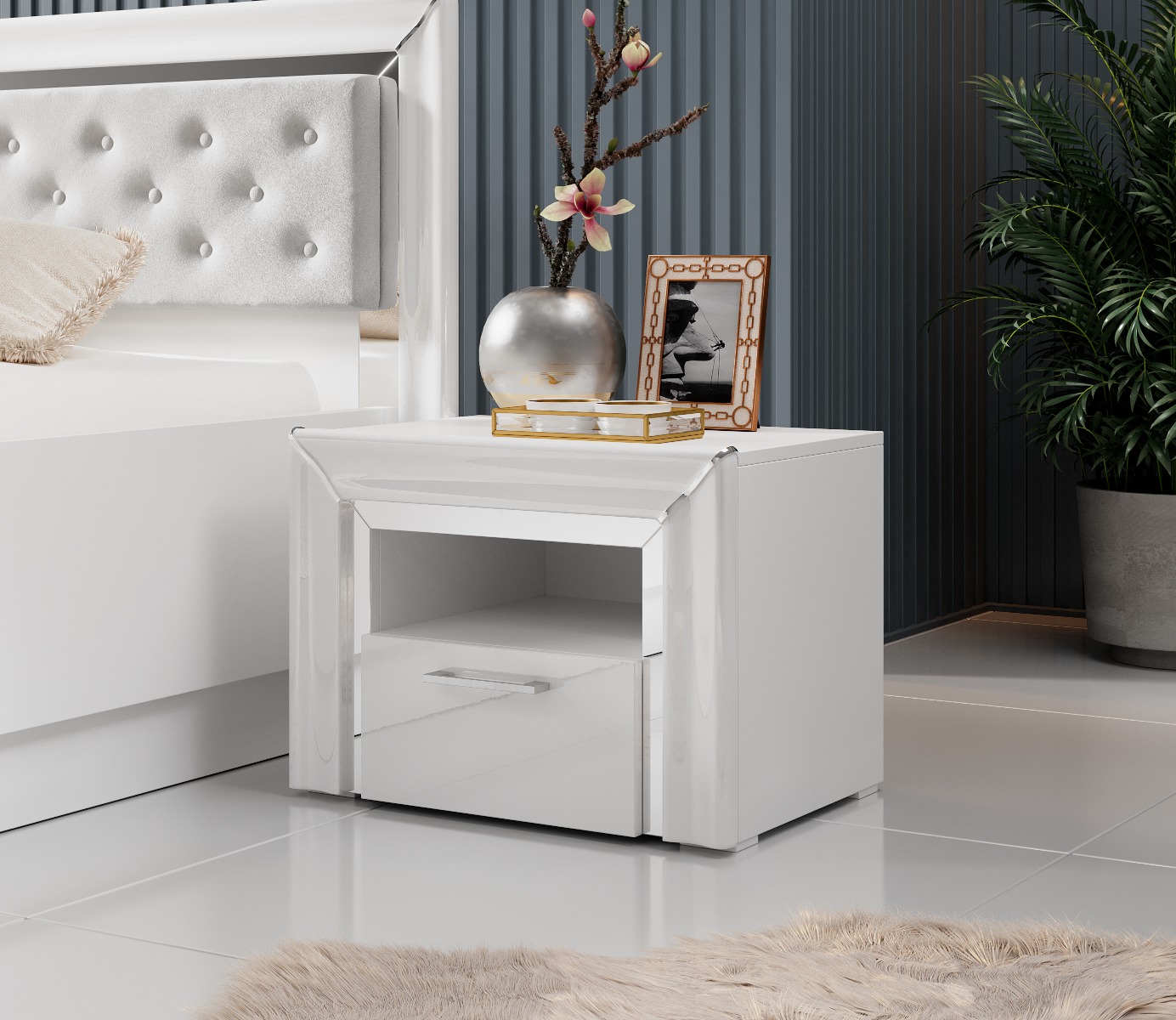 - Отделка: белый/белый глянцевый/серебристый