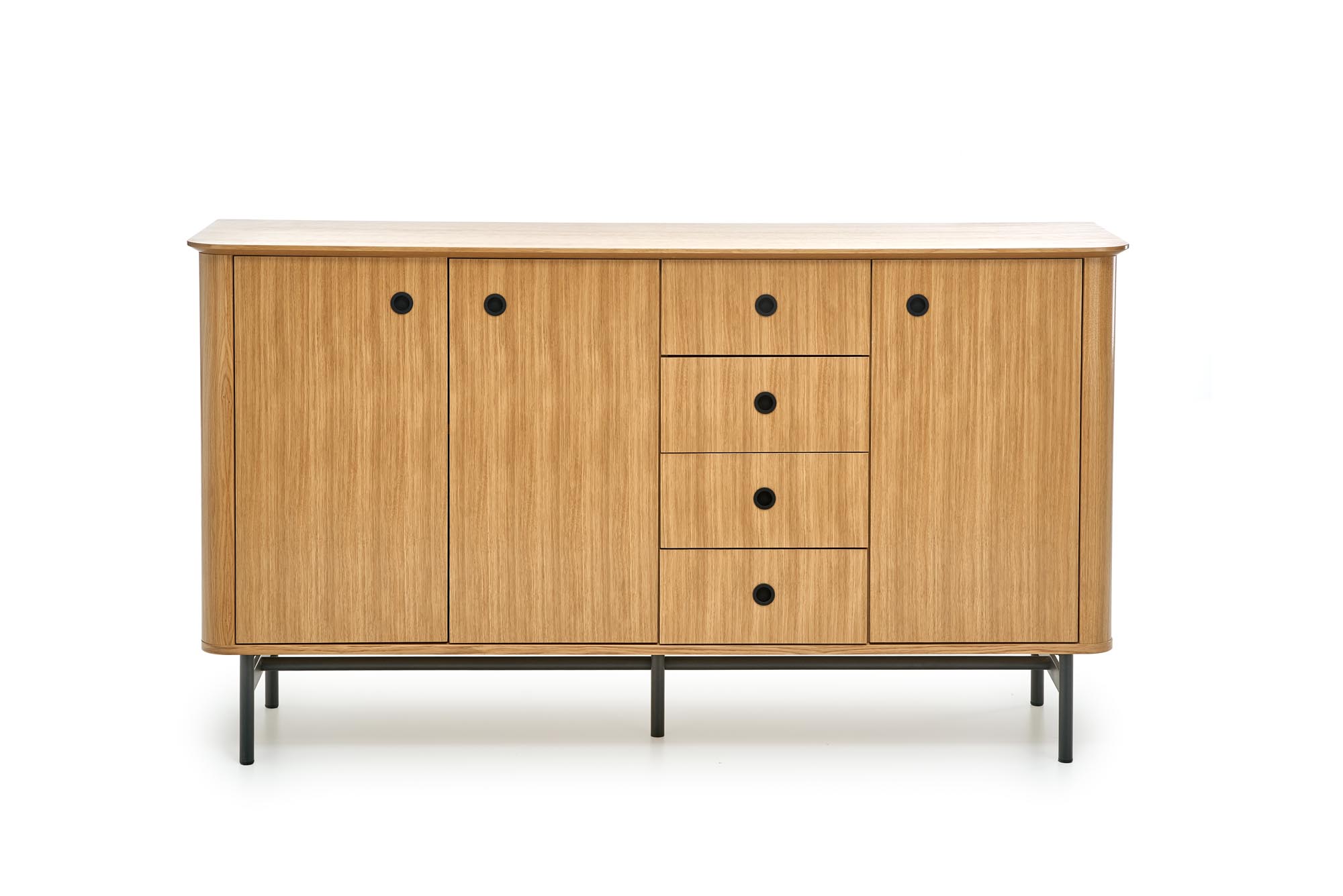 комод, размеры: 167/44/93 см, материал: МДФ + шпон натурального дуба/ДСП + шпон натурального дуба/сталь с порошковой покраской, цвет: дуб натуральный/черный