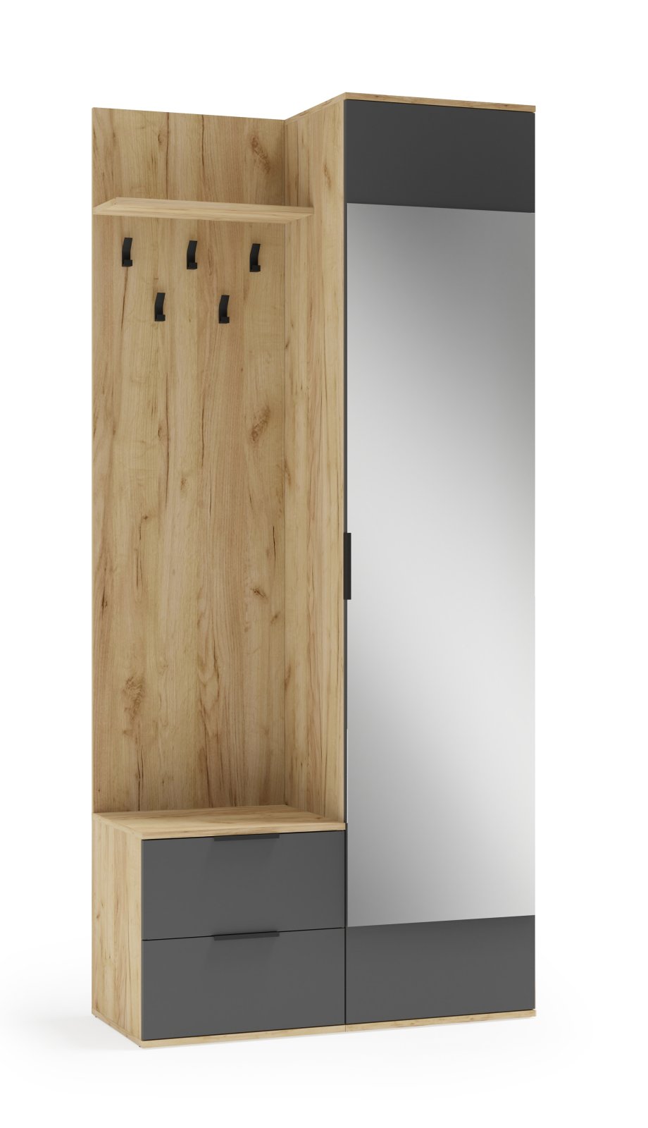 размеры: 100/45/202,5 см, материал: зеркало/ЛДСП, цвет: золотой дуб/антрацит