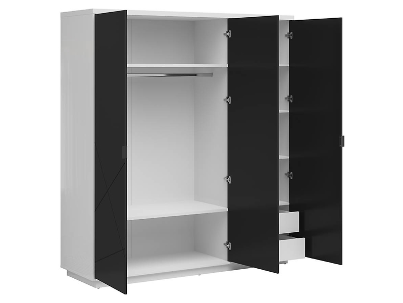 Гардероб FORN 180 см белый глянцевый/черный матовый