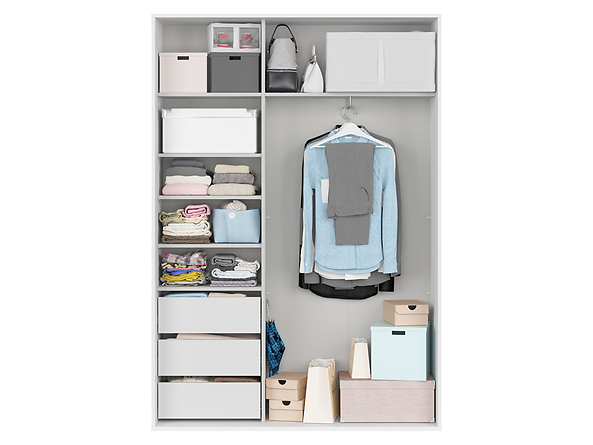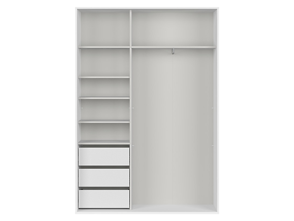 - В стоимость включено содержимое шкафа — полки, ящики и трубка для вешалок.