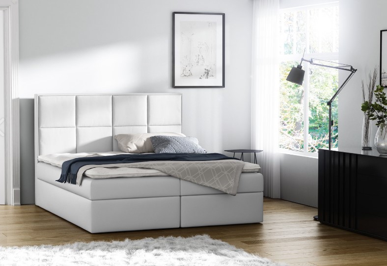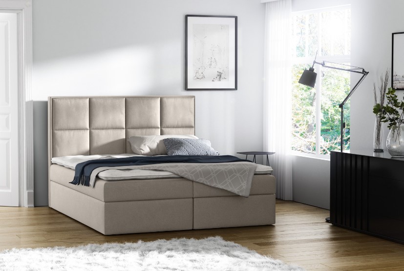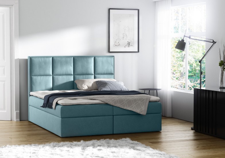 - Кровать состоит из двух ящиков для белья, матрасов POCKET (с пружинами), наматрасника Т30 и изголовья.