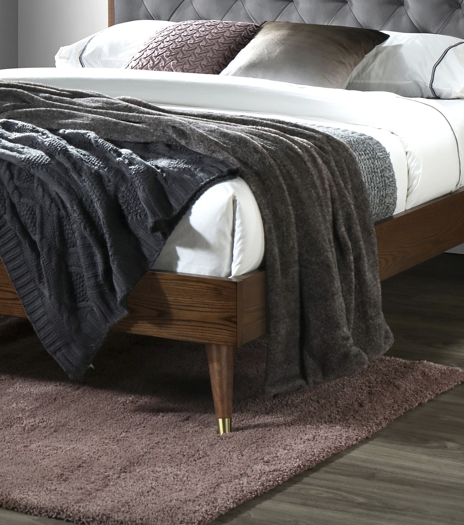 материал: ткань/массив каучукового дерева, цвет: ткань — серый, дерево — орех, * кровать без матраса, опционально матрас POLARIS 160