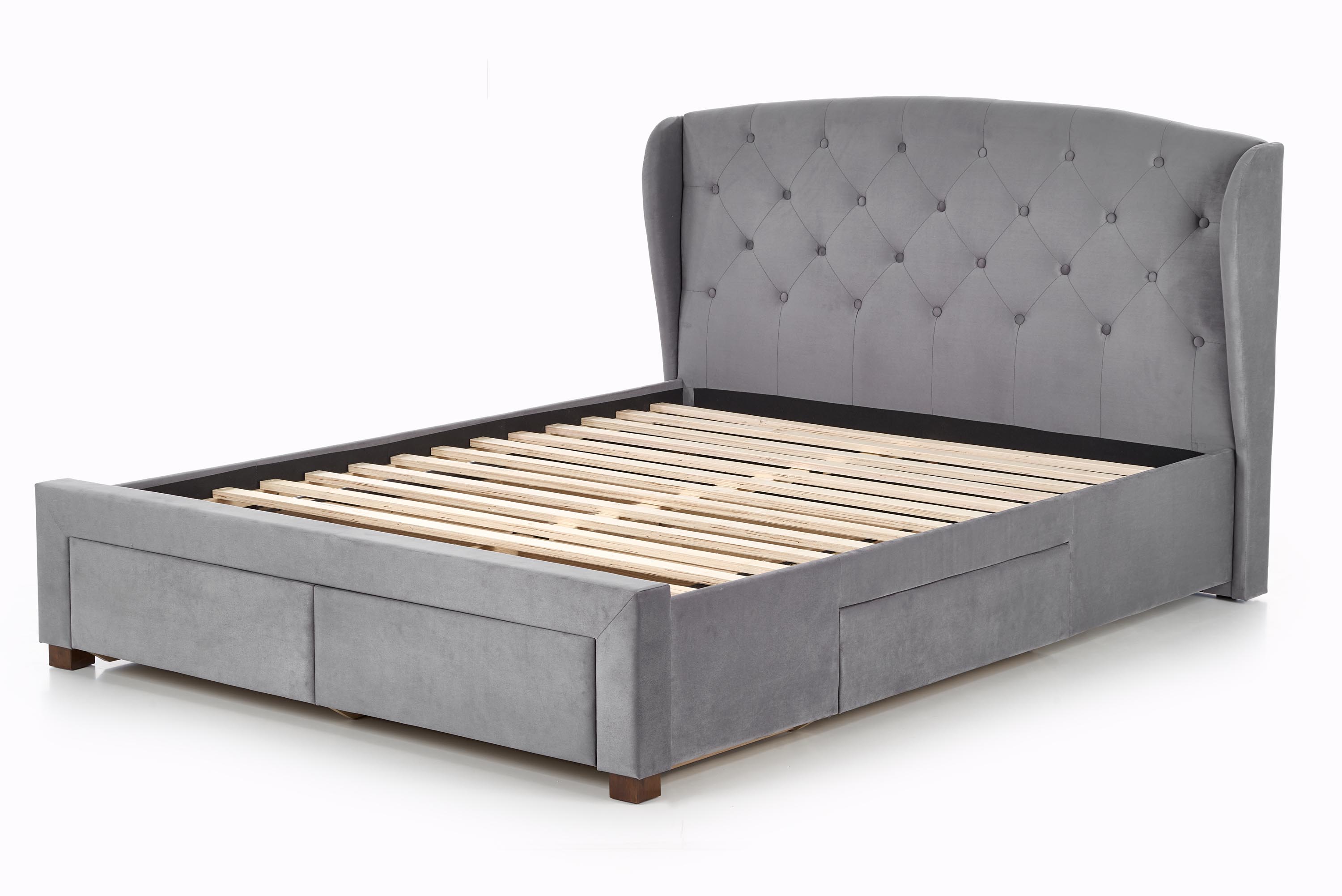 размеры: 171/218/111 см, кровать с ящиками, материал: ткань/массив дерева, цвет: ткань — серый, дерево — орех