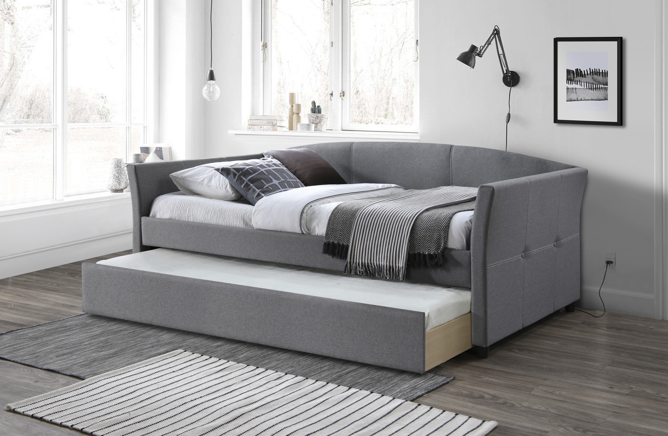 двуспальная кровать с выдвижным нижним матрасом, материал: ткань/массив каучукового дерева, * кровать без матрасов, дополнительные матрасы POLARIS 90