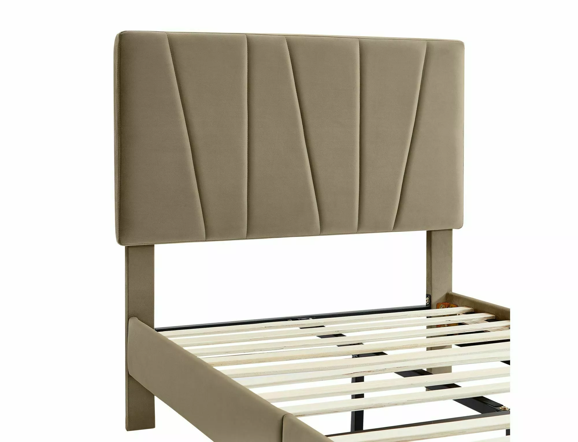 Кровать, бархатная ткань Bluvel, цвет: 28 бежевый. В комплект входит деревянная решетчатая рама. Размер матраса: 90х200см (цена без матраса).