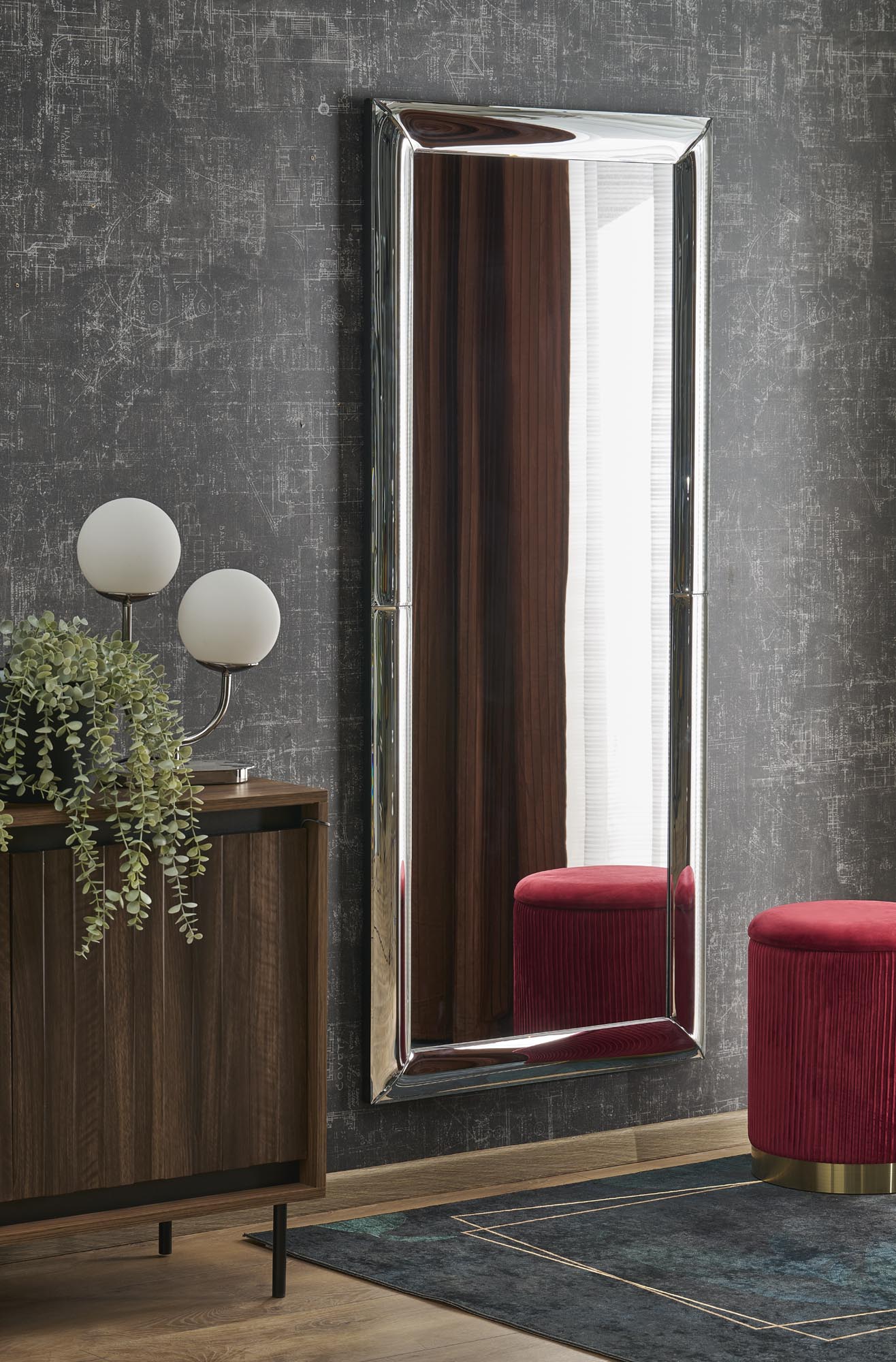 seinapeegel, mõõdud: 162/72/2,5 cm, materjal: raam – painutatud klaas, faasitud / alus – MDF plaat, peegel, värvus: hõbedane
