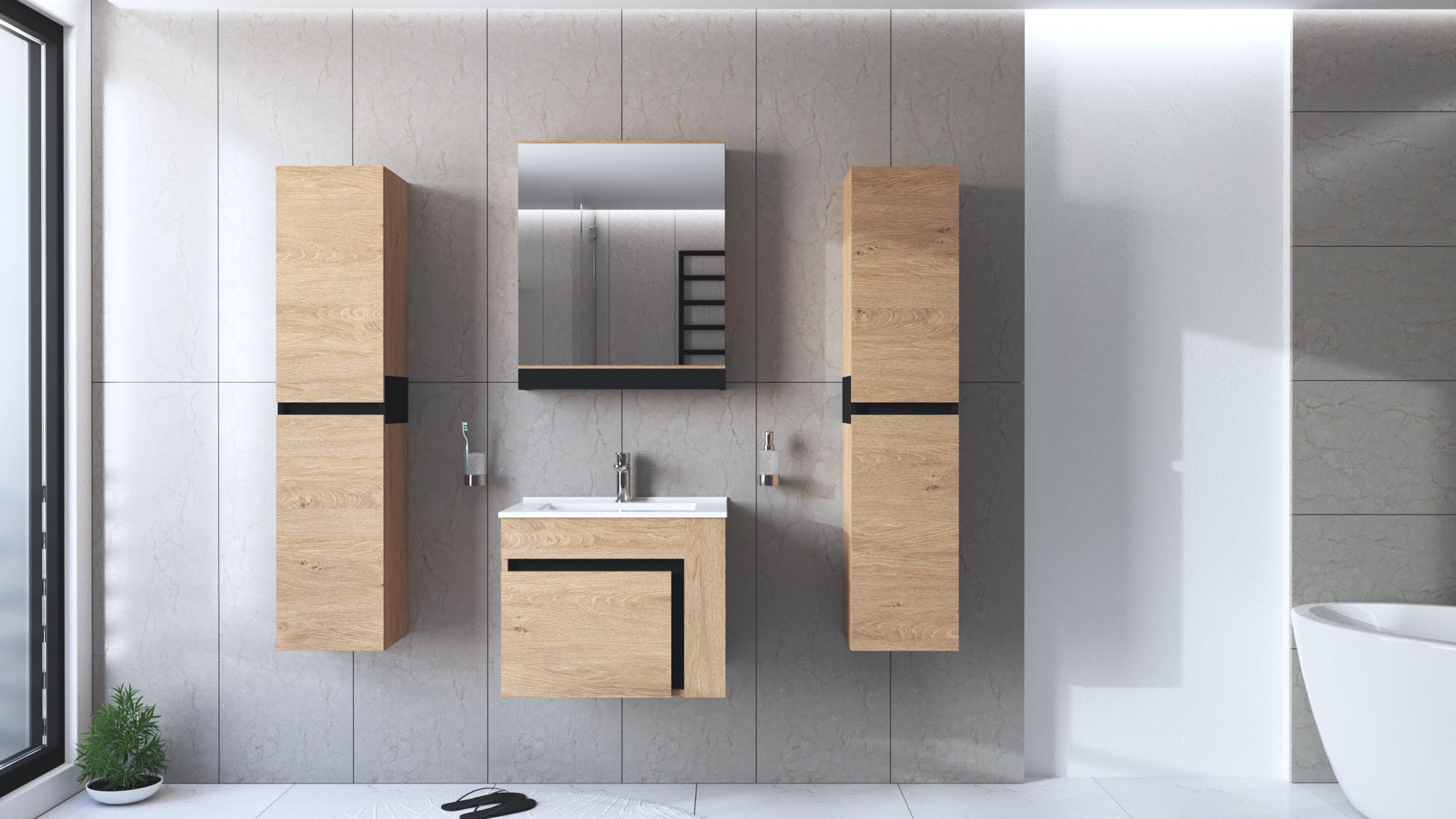 mirror cabinet, DUESA SLU-80, gold oak / black