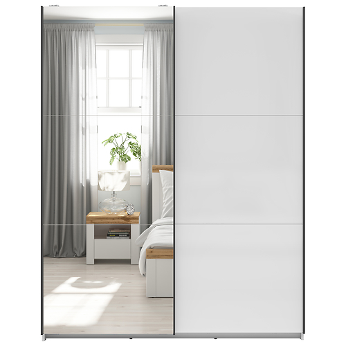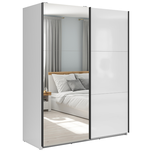 Liugustega riidekapp 153 cm TETRIX valge kõrgläige/peegel