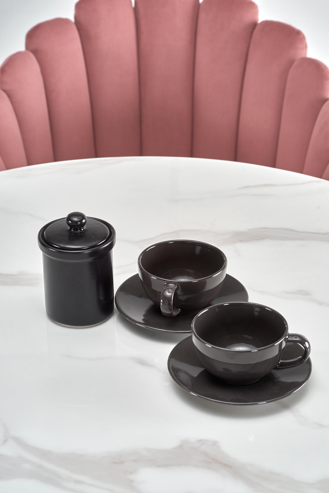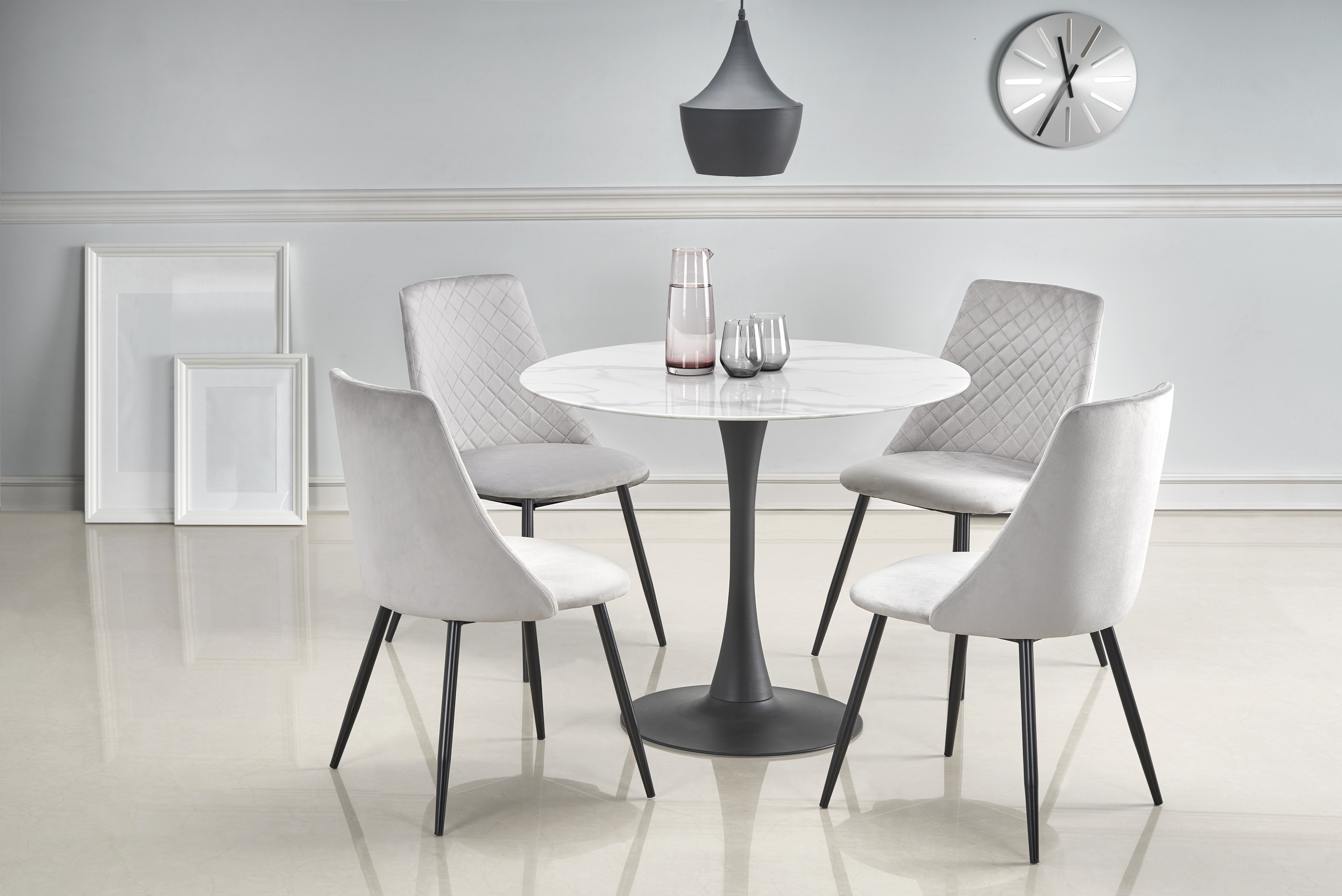 Mõõdud: o90/72 cm, materjal: klaas/pulbervärvitud teras, värvus: pealispind – valge marmor, jalad – must.