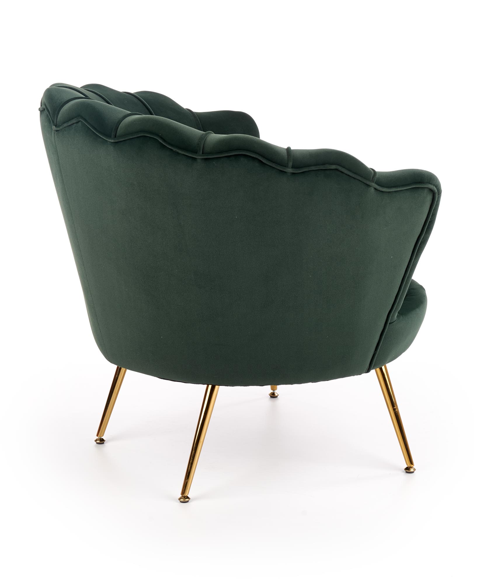 mõõdud: 83/77/77/45 cm, materjal: riie / kroomteras, värvus: polster – tumeroheline, jalad – kuld