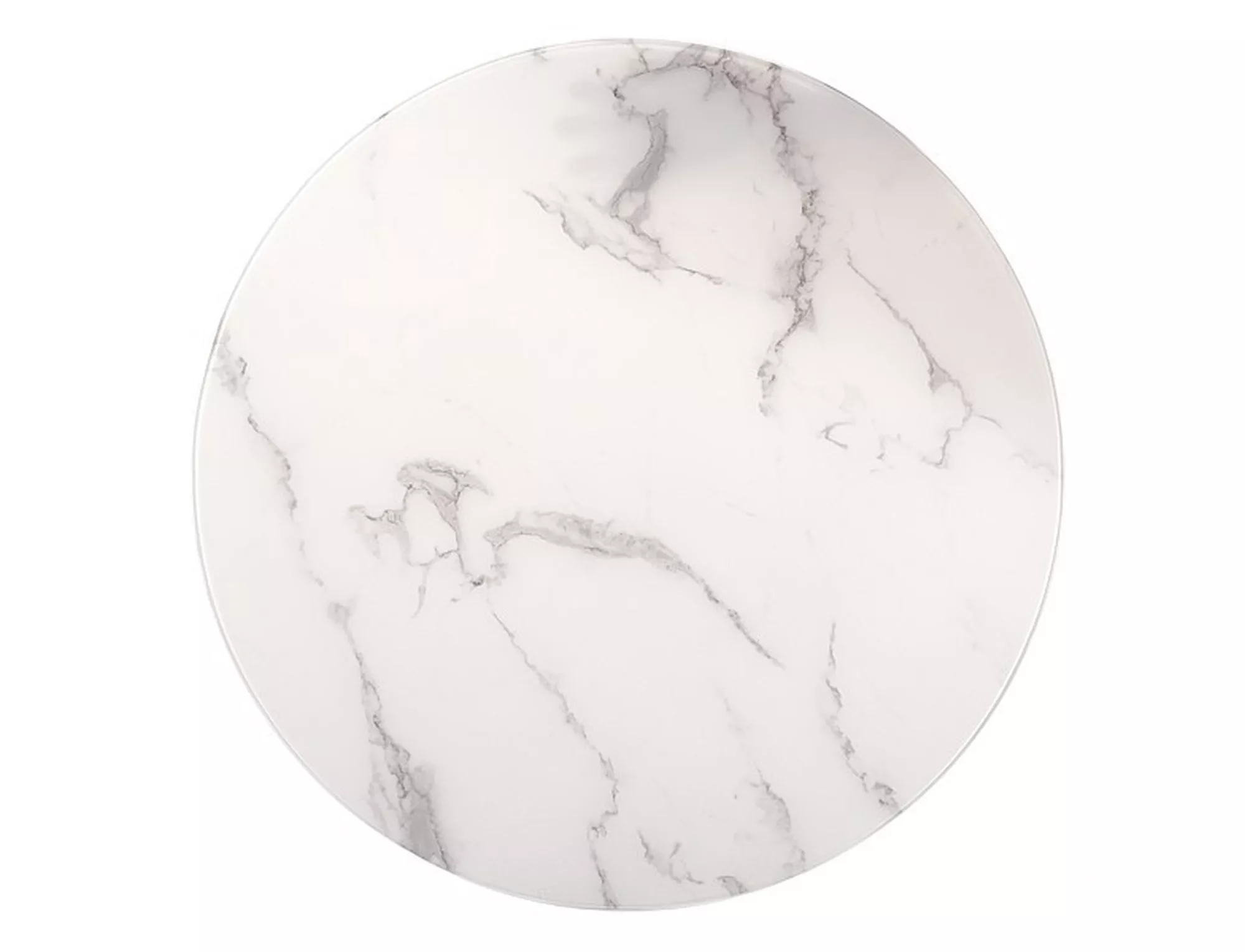 Diivanilaudade komplekt, pealispind: klaas, raam: metall, värvus: valge, marmorefekt / kroom. Väiksema laua mõõdud: fi: 43, h-35cm.