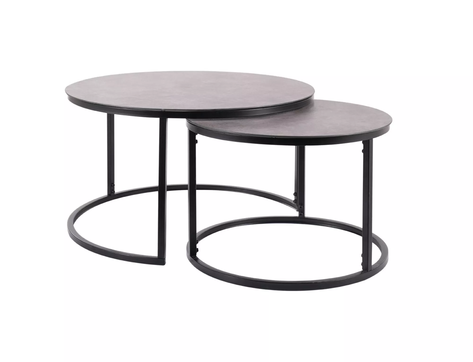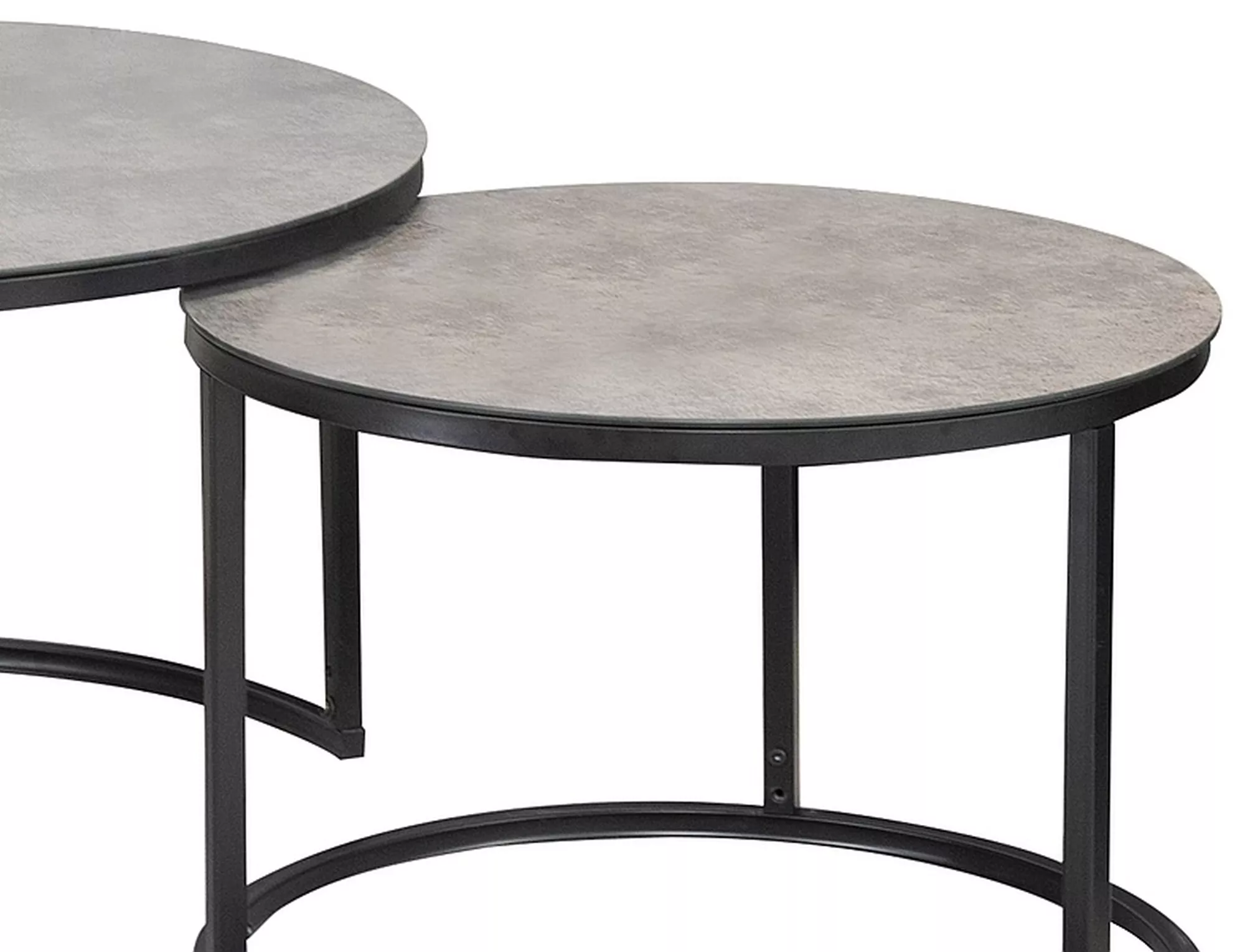 Diivanilaudade komplekt, pealispind: klaas, raam: metall, värvus: matthall, marmorefekt / mattmust. Väiksema laua mõõdud: fi: 60, h-42cm.
