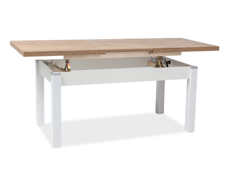 Laud, pealispind: lamineeritud plaat, raam: puit, värvid: lanselottamm + poolmatt valge. Ülemise tõste sujuv reguleerimine, maksimaalne kõrgus 71 cm. Lisasisustus, topi pikkus peale lahtivõtmist 164 cm.