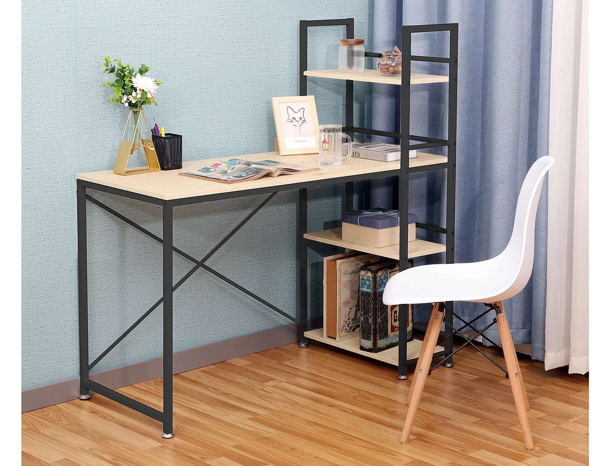 Kirjutuslaud, pealispind: lamineeritud plaat, raam: metall, värvus: tamm / must matt. Kõrgus koos pikendusega: 113cm