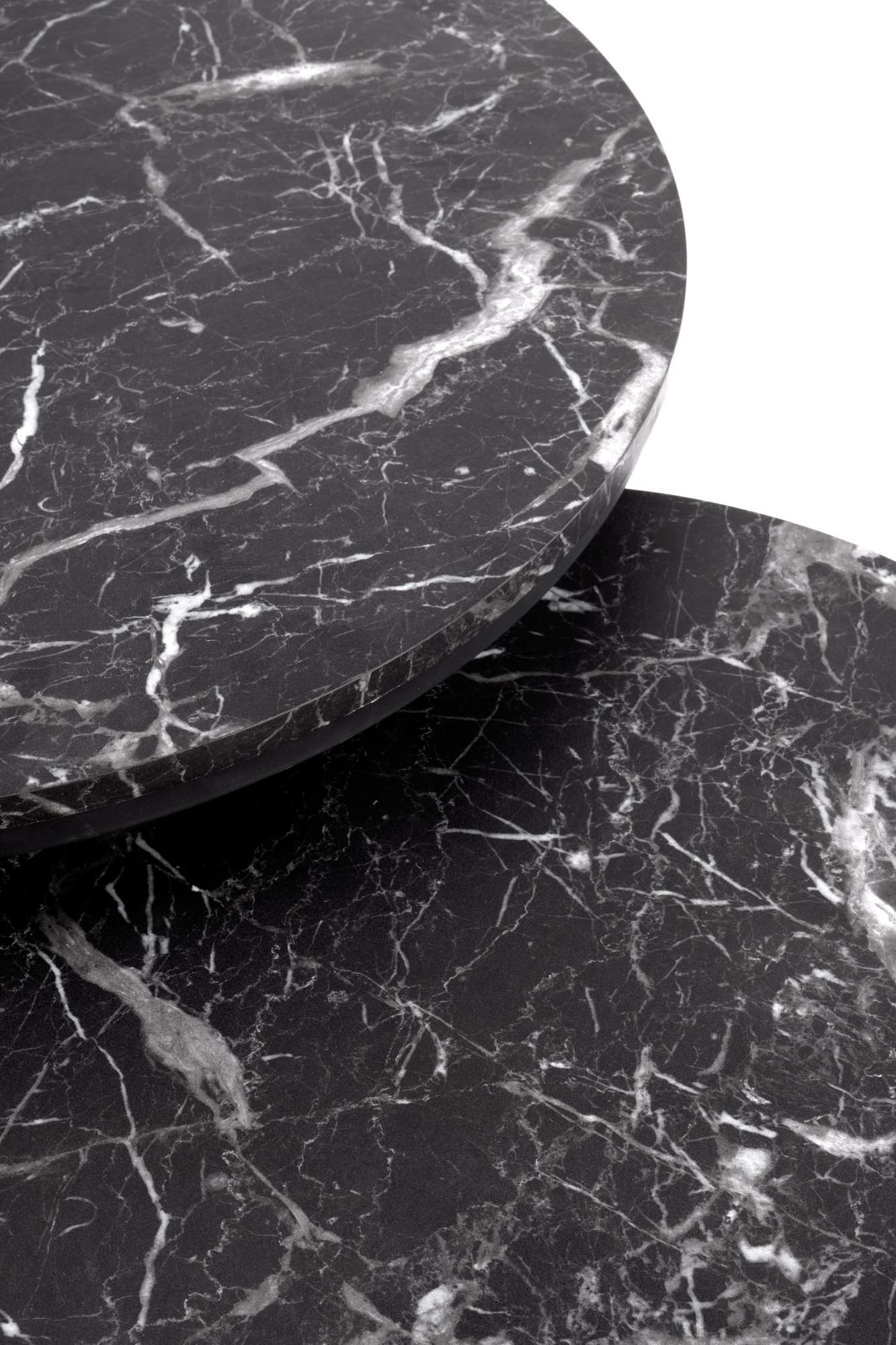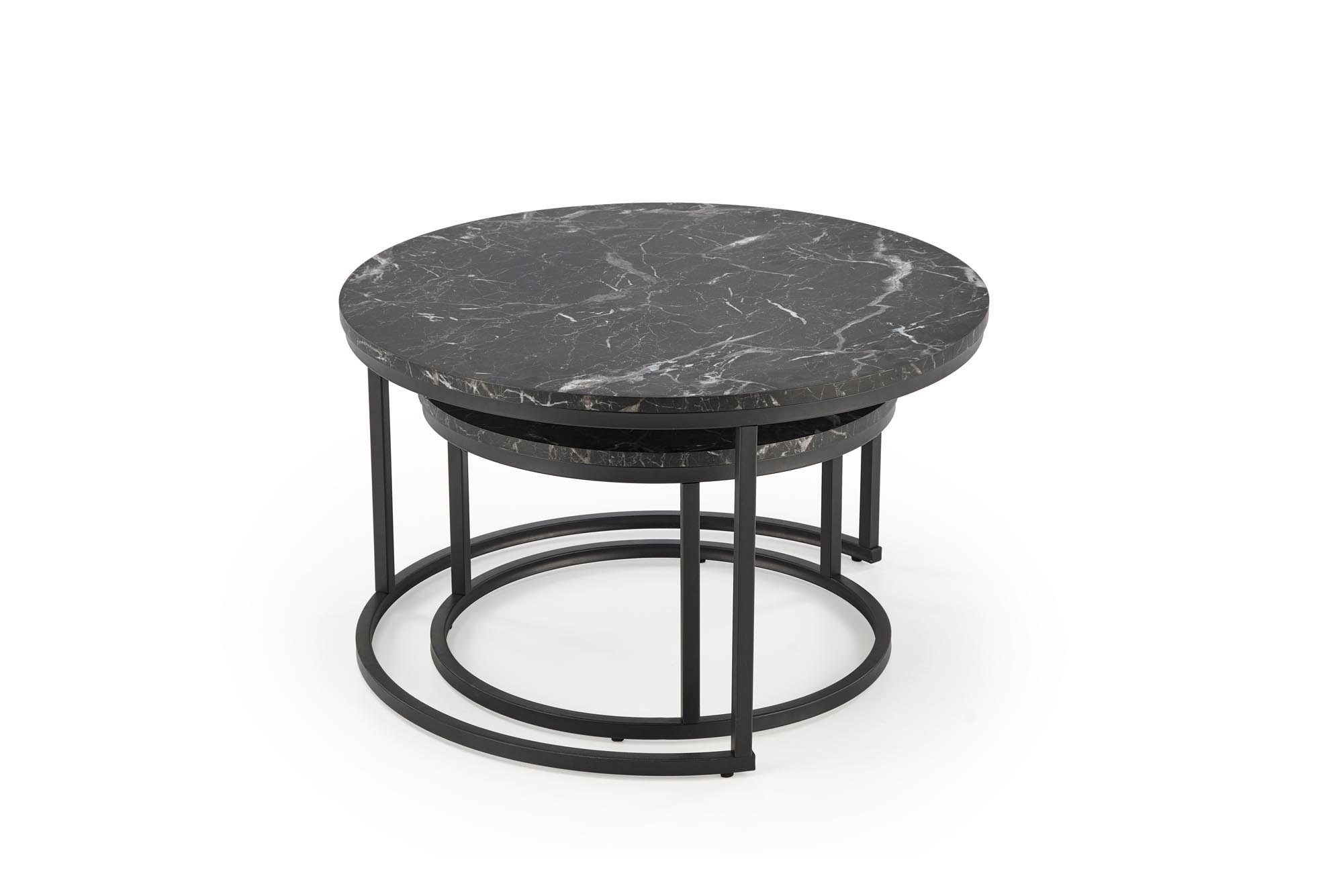 mõõdud: 79/47 cm ja 59/37 cm: komplekt kahest, materjal: lamineeritud MDF / pulbervärvitud teras, värvid: must marmor / must