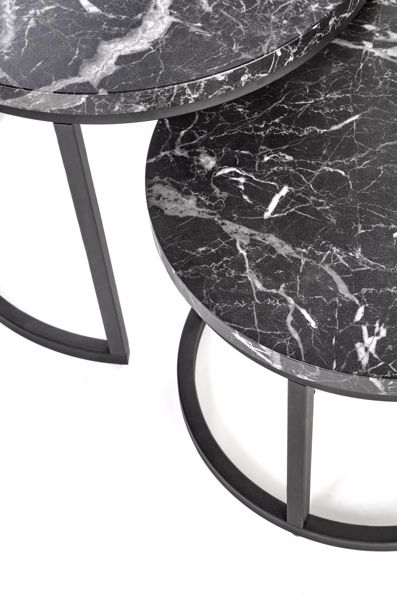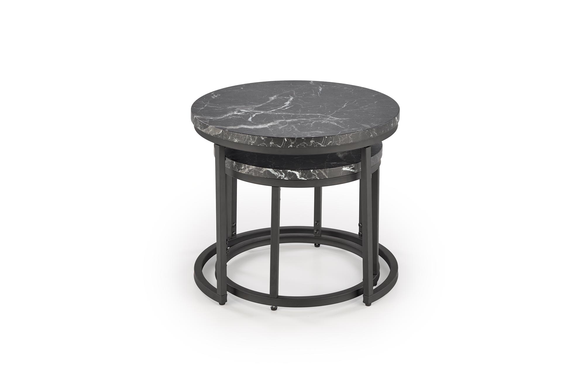 wymiary: suur – fi53/45 cm, väike – fi43/35 cm, kaheosaline, materjal: lamineeritud MDF / pulbervärvitud teras, värvus: must marmor / must