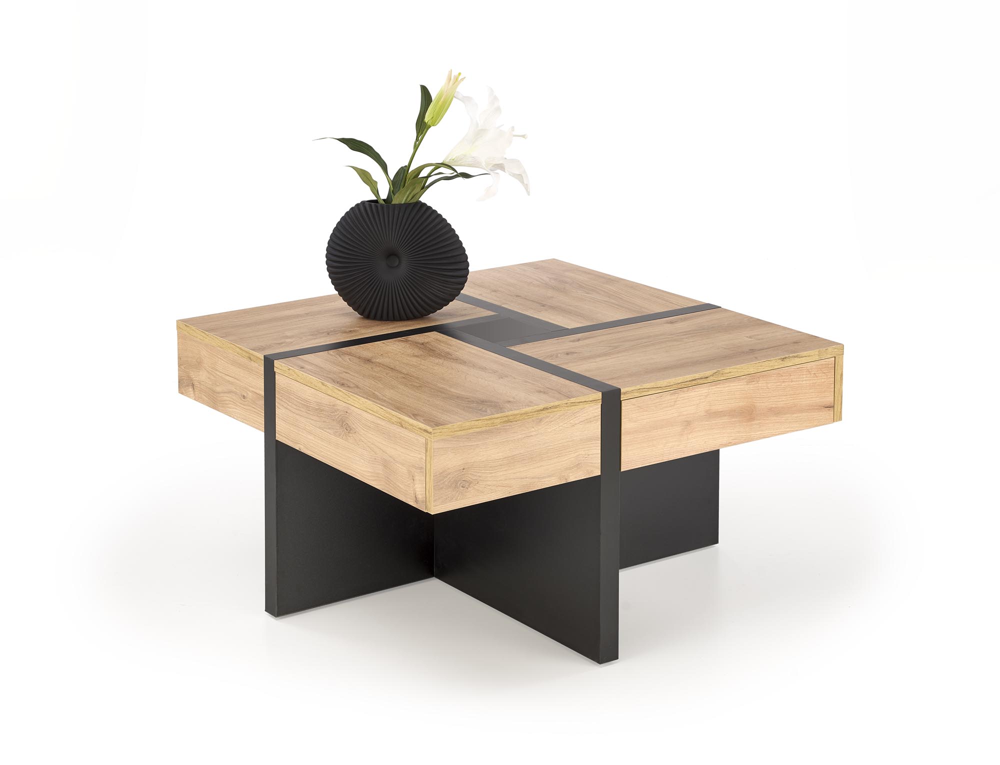 mõõdud: 80/80/43 cm, materjal: lamineeritud puitlaastplaat, värvus: carft tamm / must matt