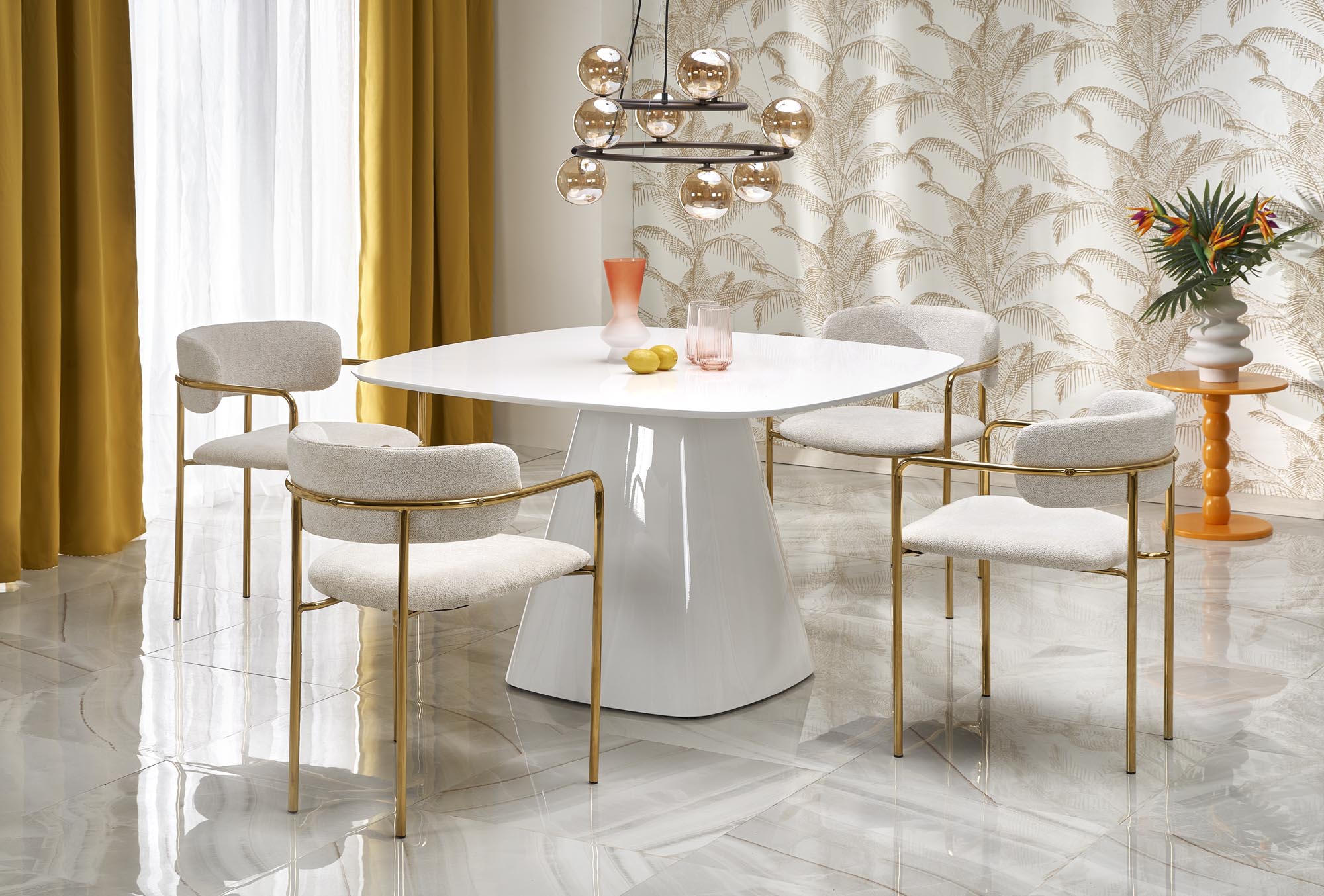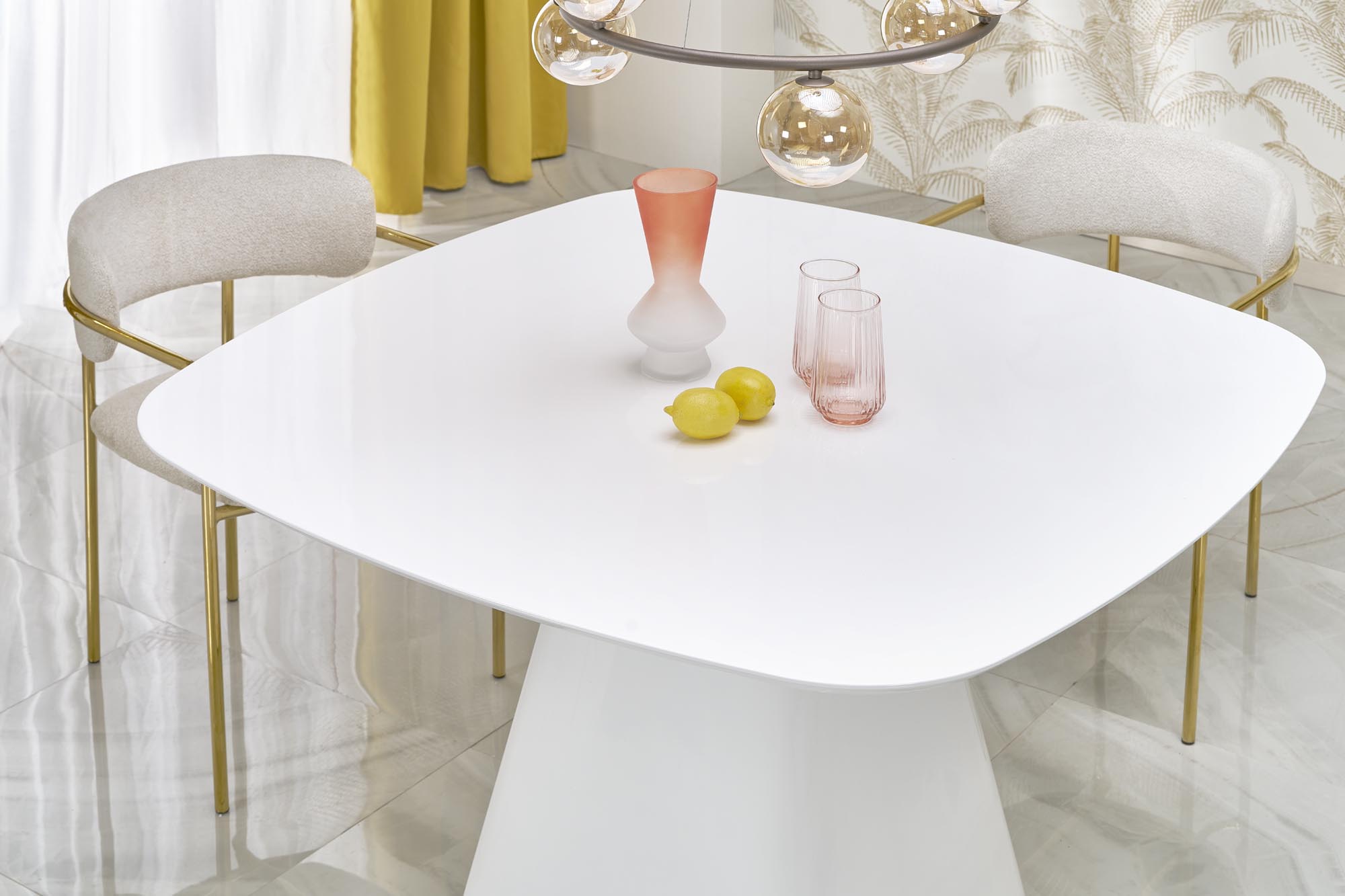 mõõdud: 120/120/77 cm; materjal: lakitud MDF, värvus: valge