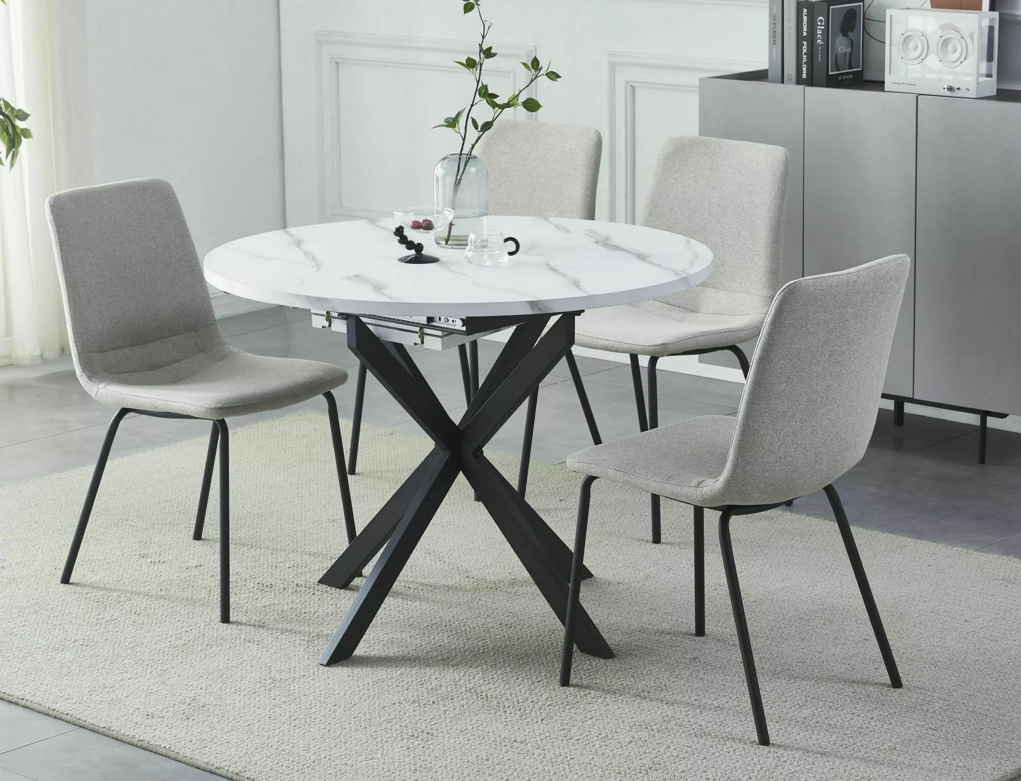 Pikendatav laud, pealispind: MDF + spoon, raam: metall, värvus: valge marmorefekt / must.