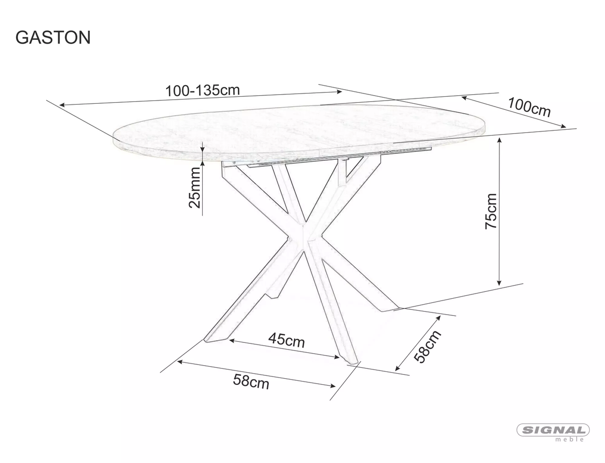 Pikendatav laud, pealispind: MDF + spoon, raam: metall, värvus: käsitöötamm / mattmust.