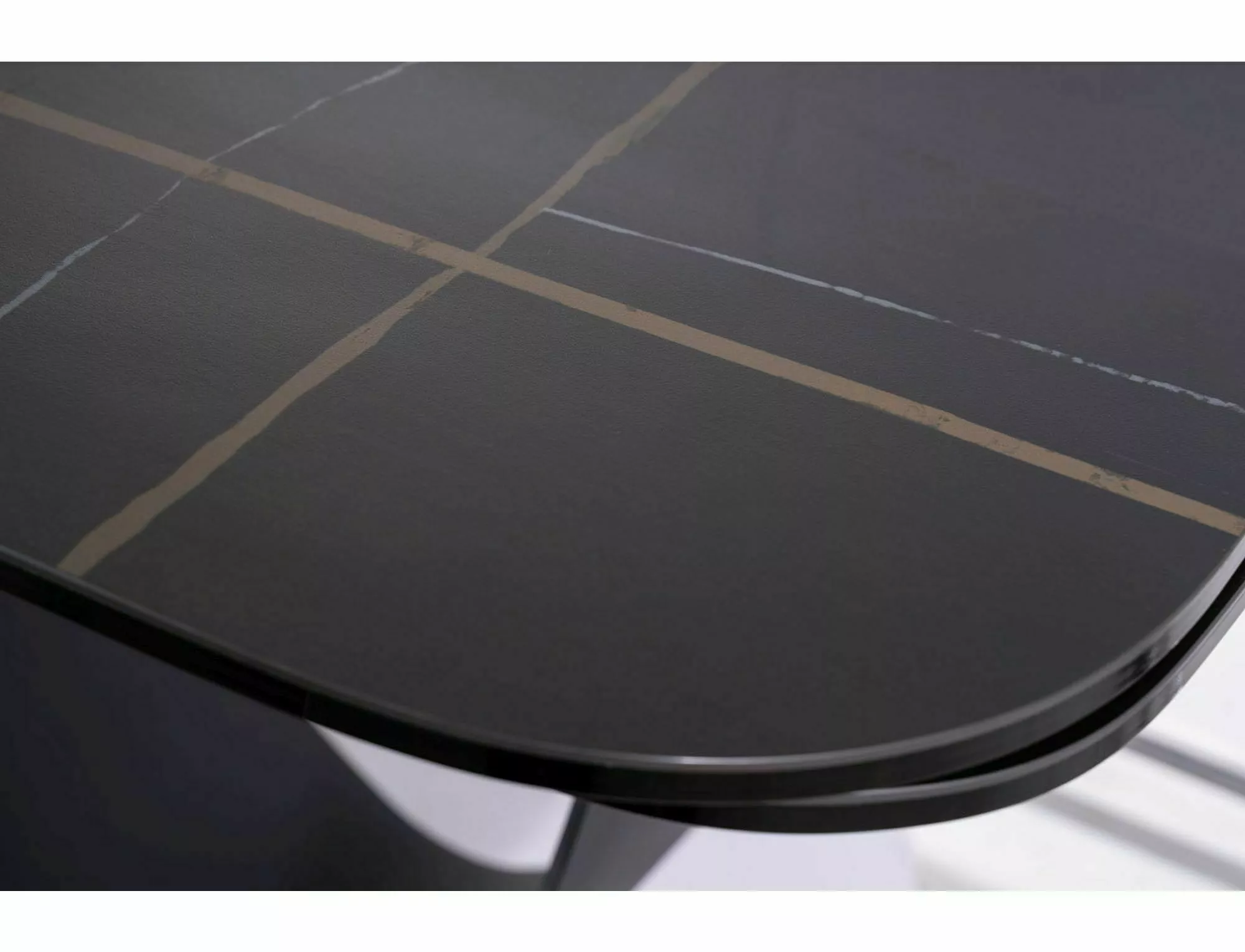 Pikendatav laud, pealispind: karastatud klaas + Hispaania keraamika, AZARIO BLACK, raam: metall, värvus: must / mattmust.