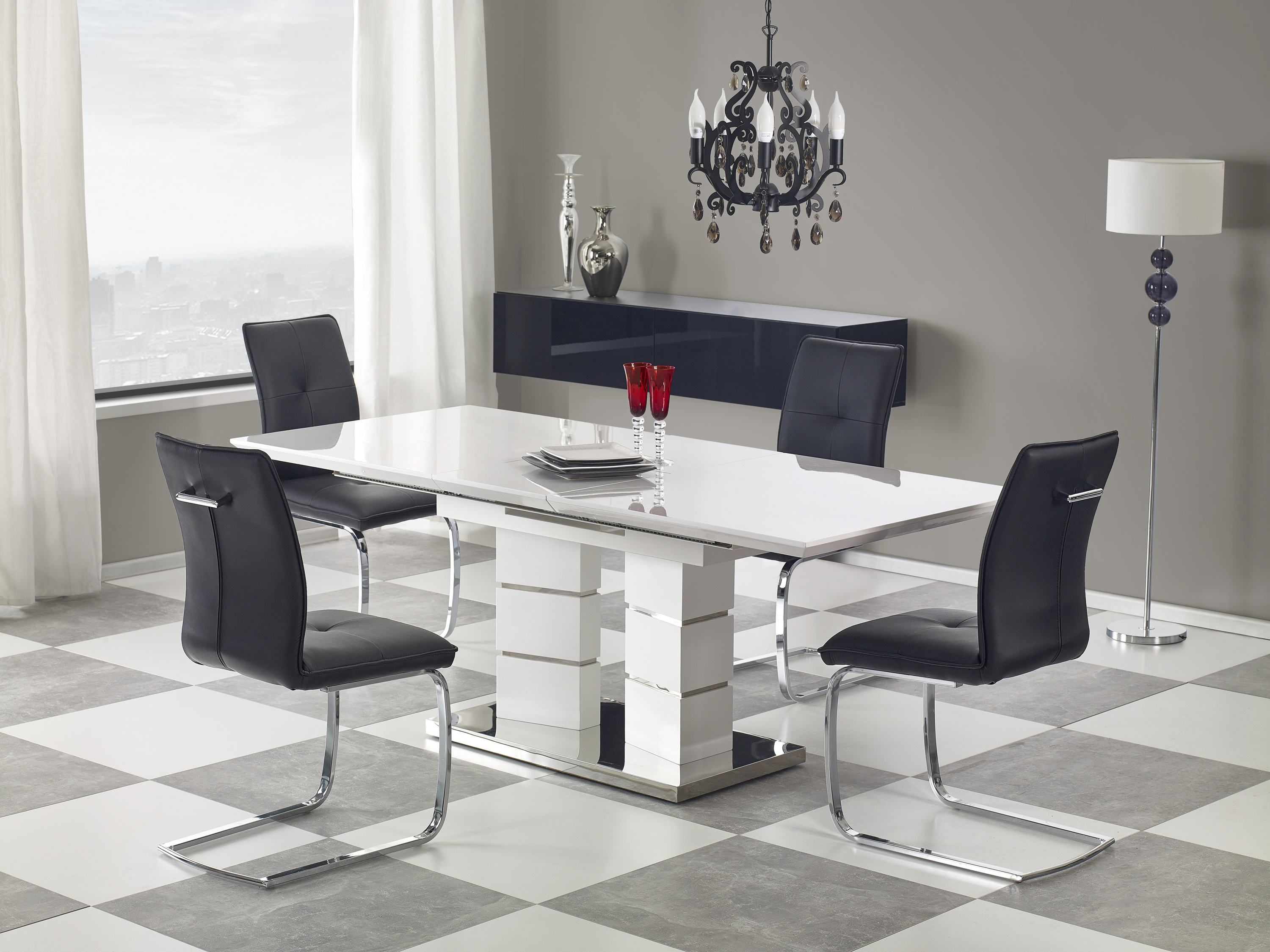 pikenduslaud, mõõdud: 160÷200/90/75 cm, materjal: lakitud MDF / roostevaba teras, värvus: valge