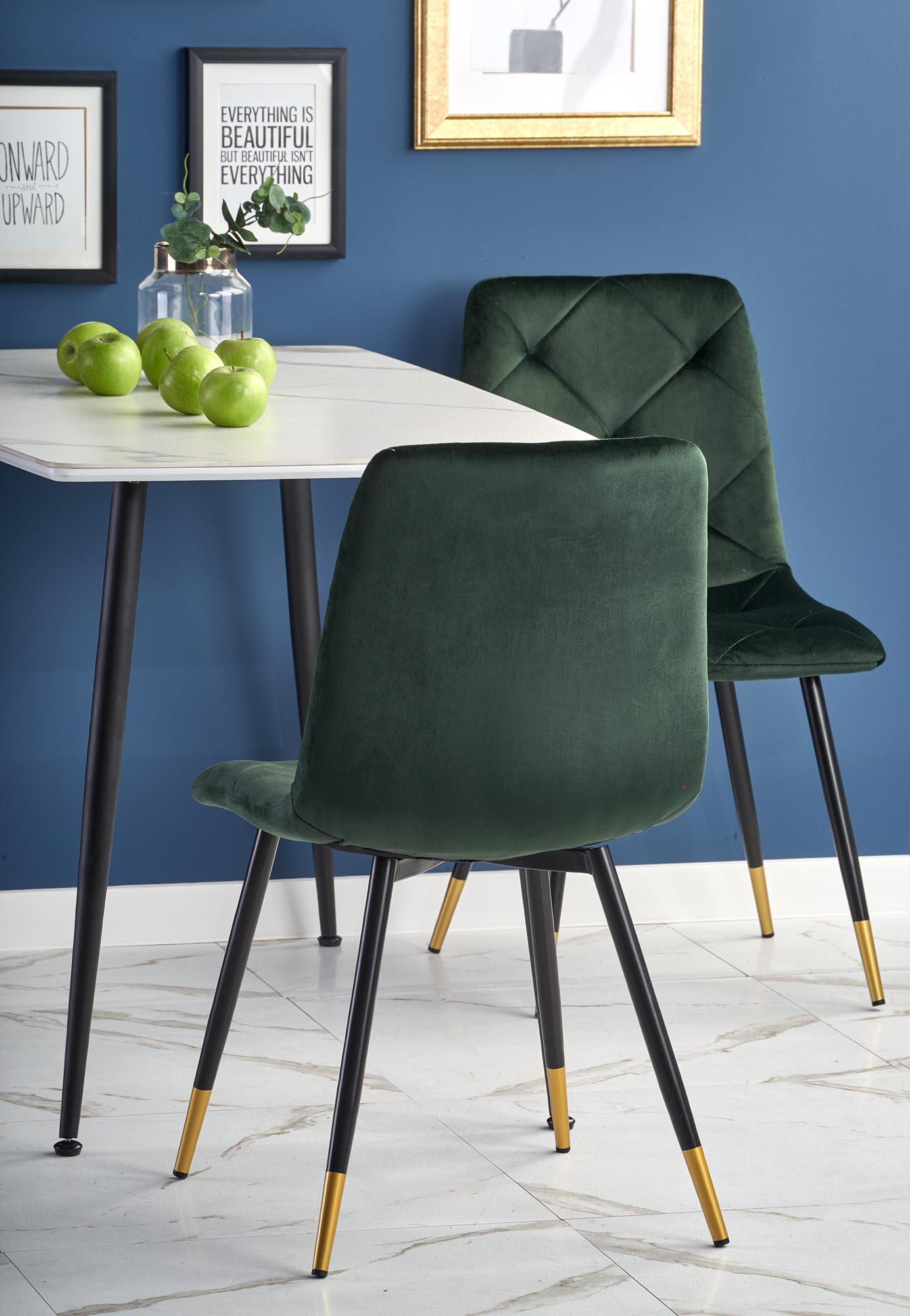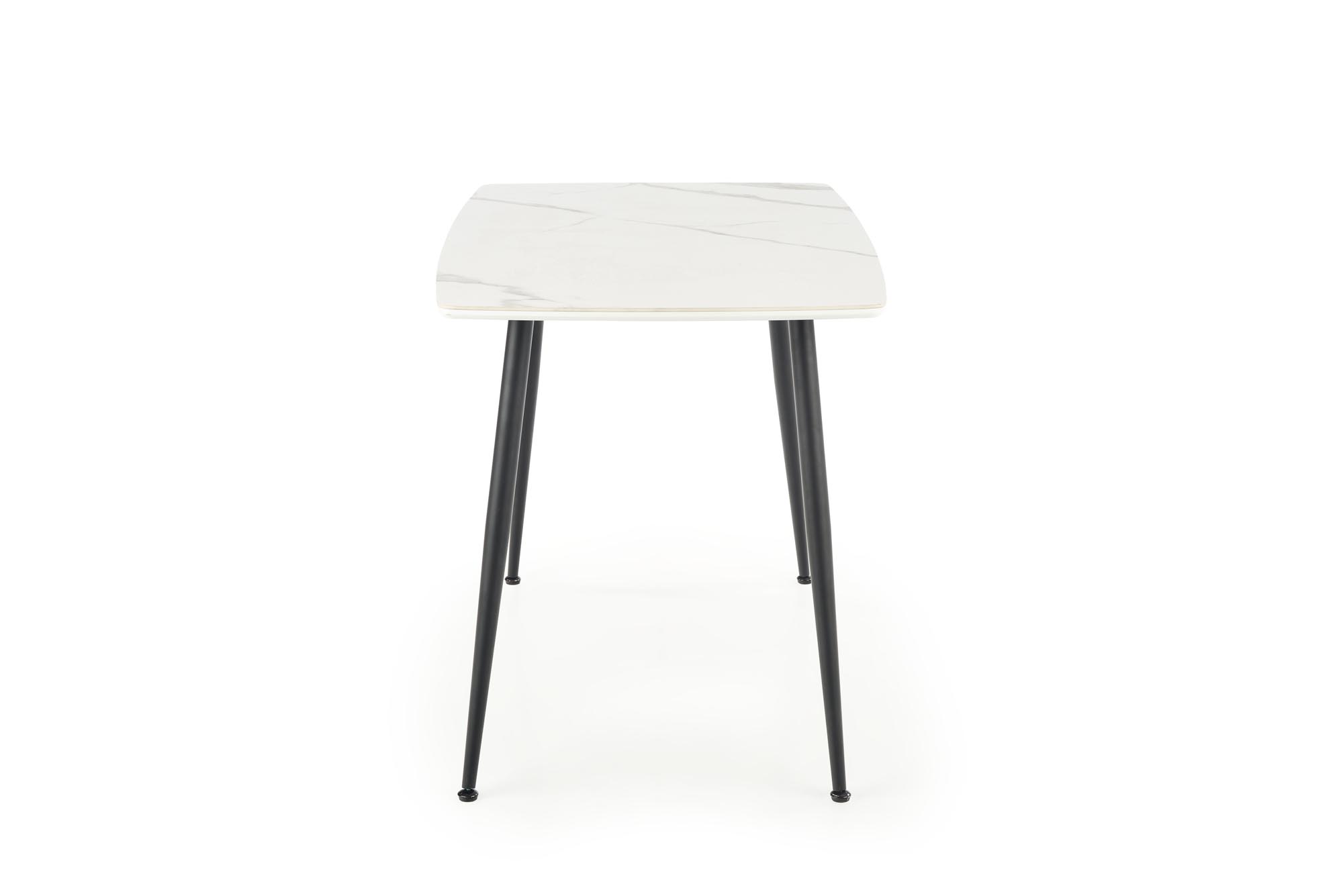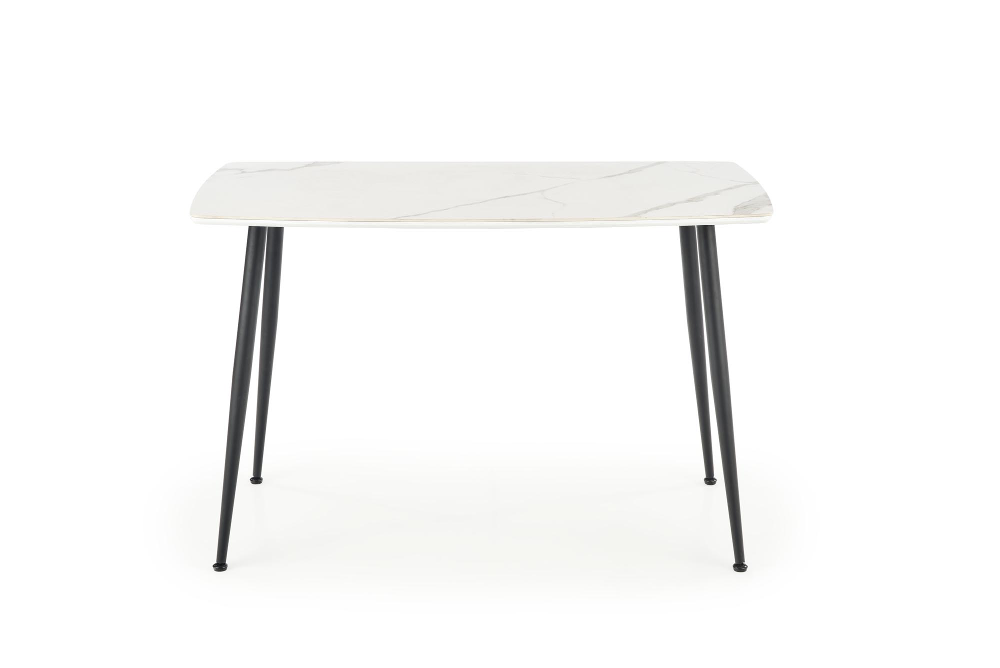 mõõdud: 120/70/77 cm, materjal: klaas / lakitud MDF / pulbervärvitud teras, värvus: pealispind – valge marmor, jalad – must