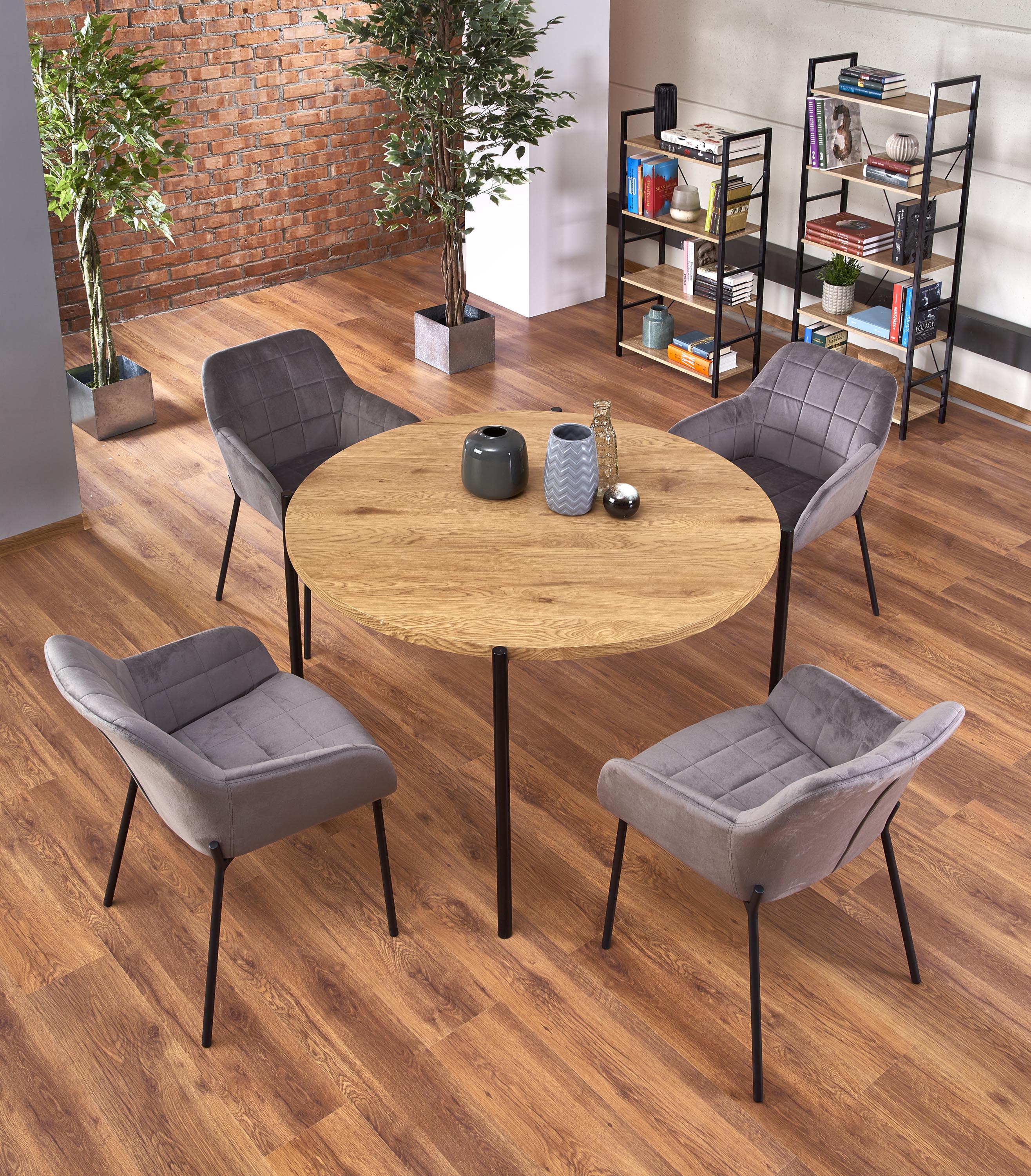 mõõdud: fi120/76 cm, materjal: lamineeritud MDF / pulbervärvitud teras, värvus: pealisosa – kuldne tamm, jalad – must