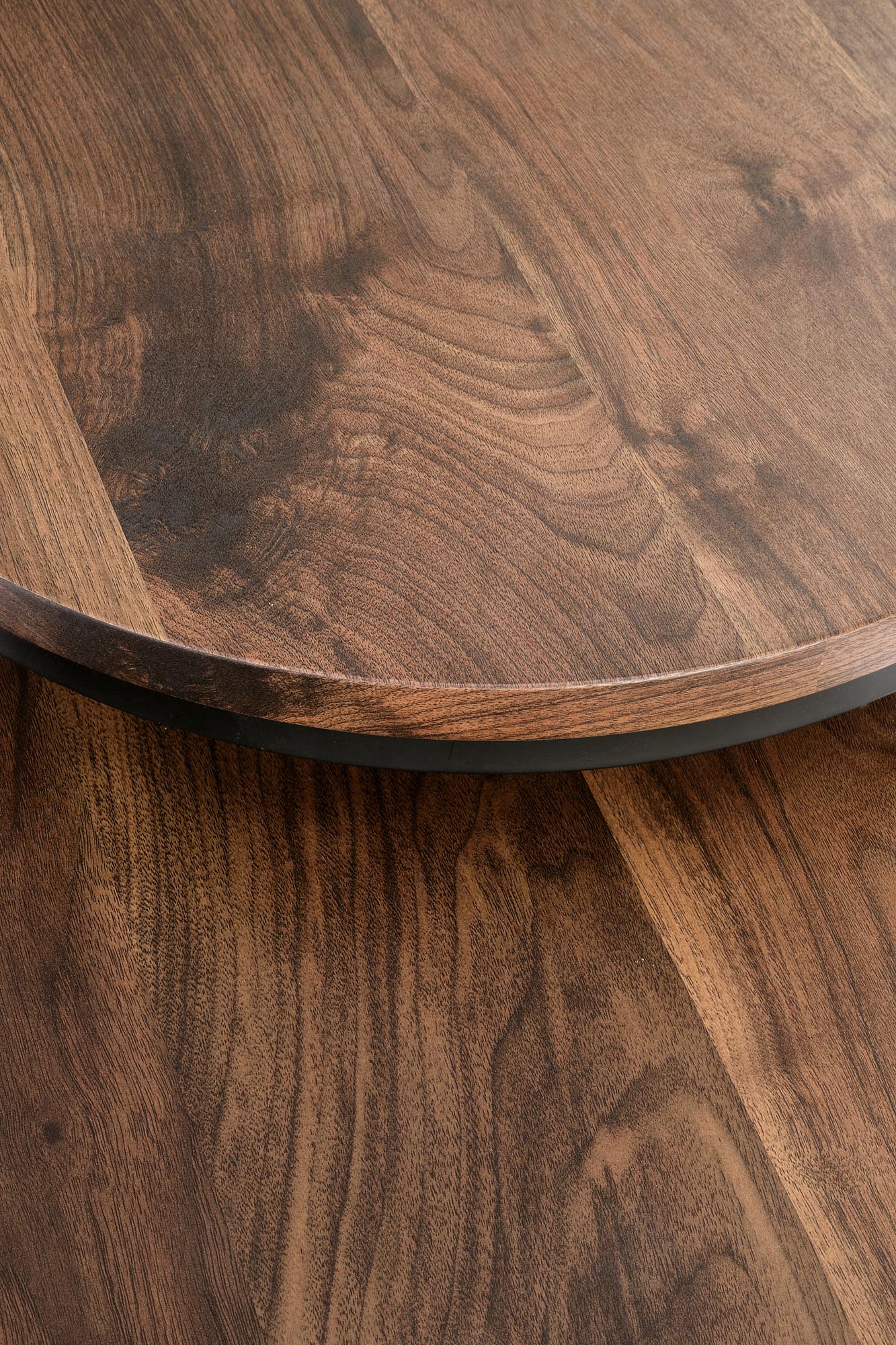 mõõdud: suur – fi53/45 cm, väike – fi43/35 cm, kaheosaline, materjal: lamineeritud MDF / pulbervärvitud teras, värvus: pähkel / must