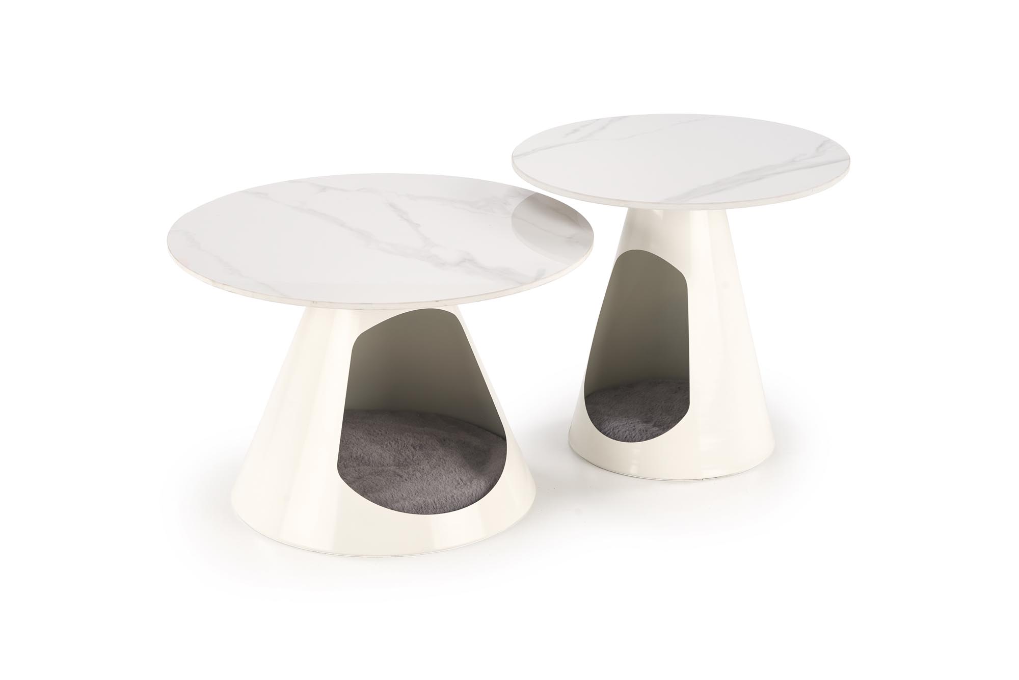 mõõdud: 60/40 cm ja 50/46 cm; komplekt kahest, materjal: paagutatud kivi / pulbervärvitud teras, värvus: valge marmor / valge