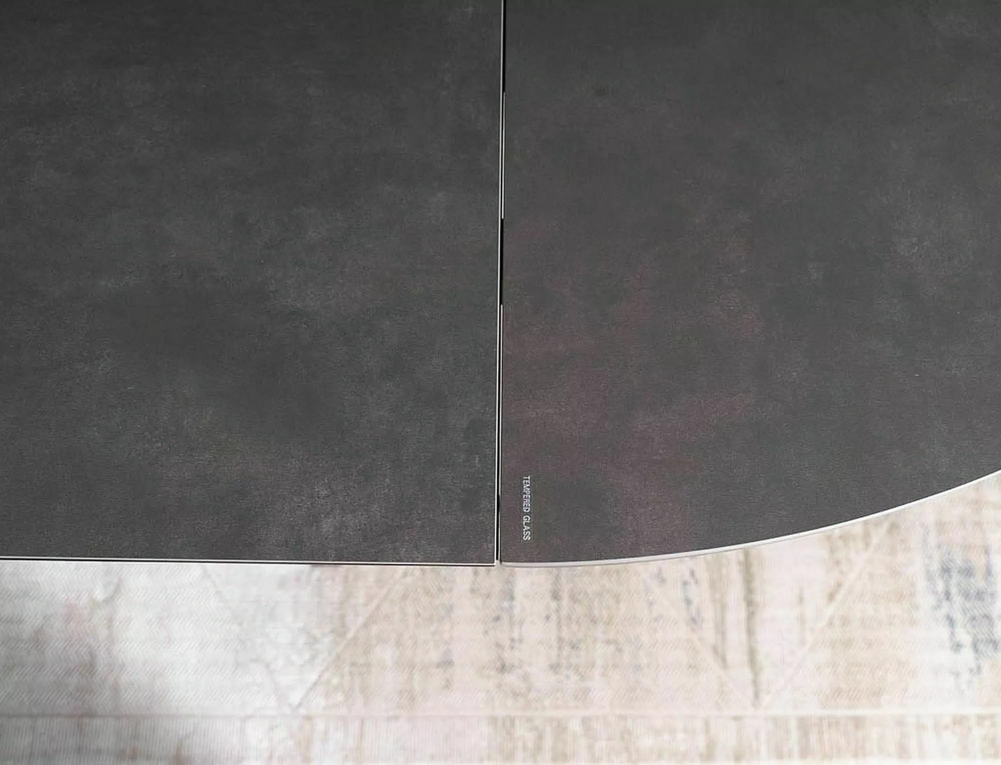 Pikendatav laud, plaat: karastatud klaas + Hispaania keraamika, CORSO GREY, raam: metall, värvus: tumehall / mattmust. Mõõdud peale lahtivoltimist 120x160cm.
