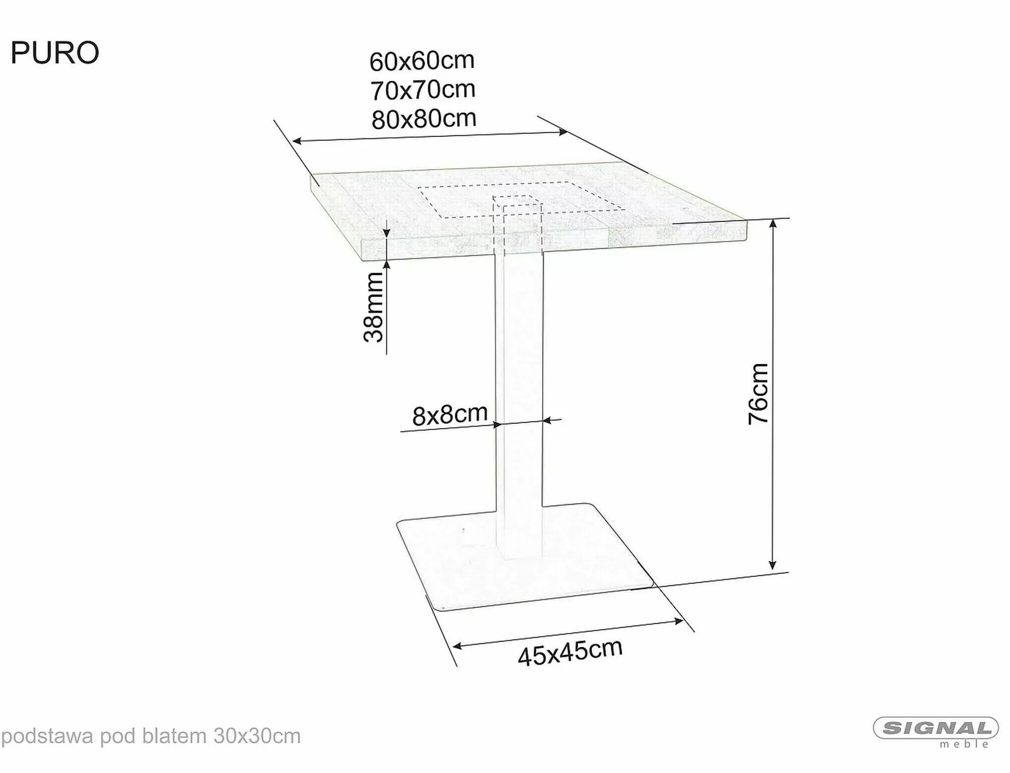 Laud, plaat: lamineeritud plaat, raam: metall, värvus: naturaalne tamm / must. Aluse suurus 45x45cm, sääreprofiil 8x8cm.