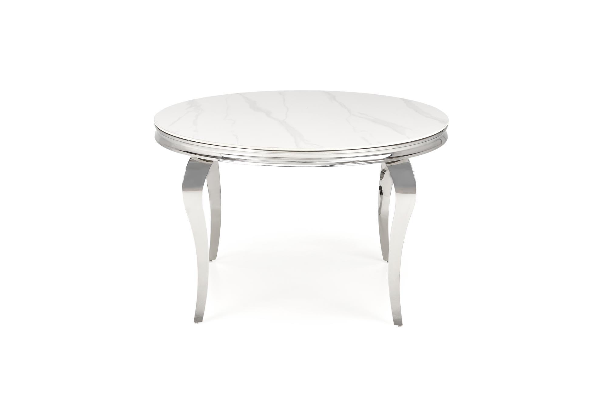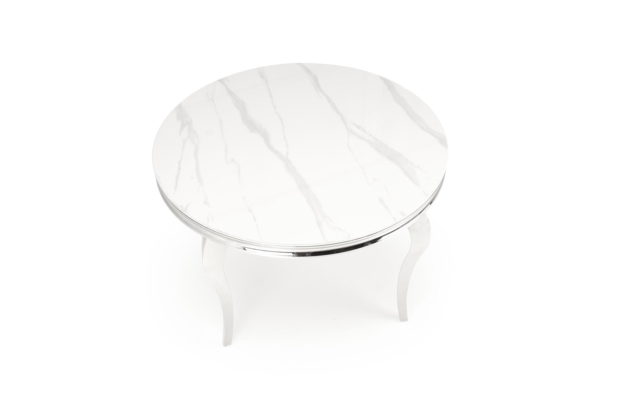 mõõdud: 120/76/77 cm; materjal: paagutatud kivi / roostevaba teras, värvus: pealispind – valge marmor, jalad – hõbe