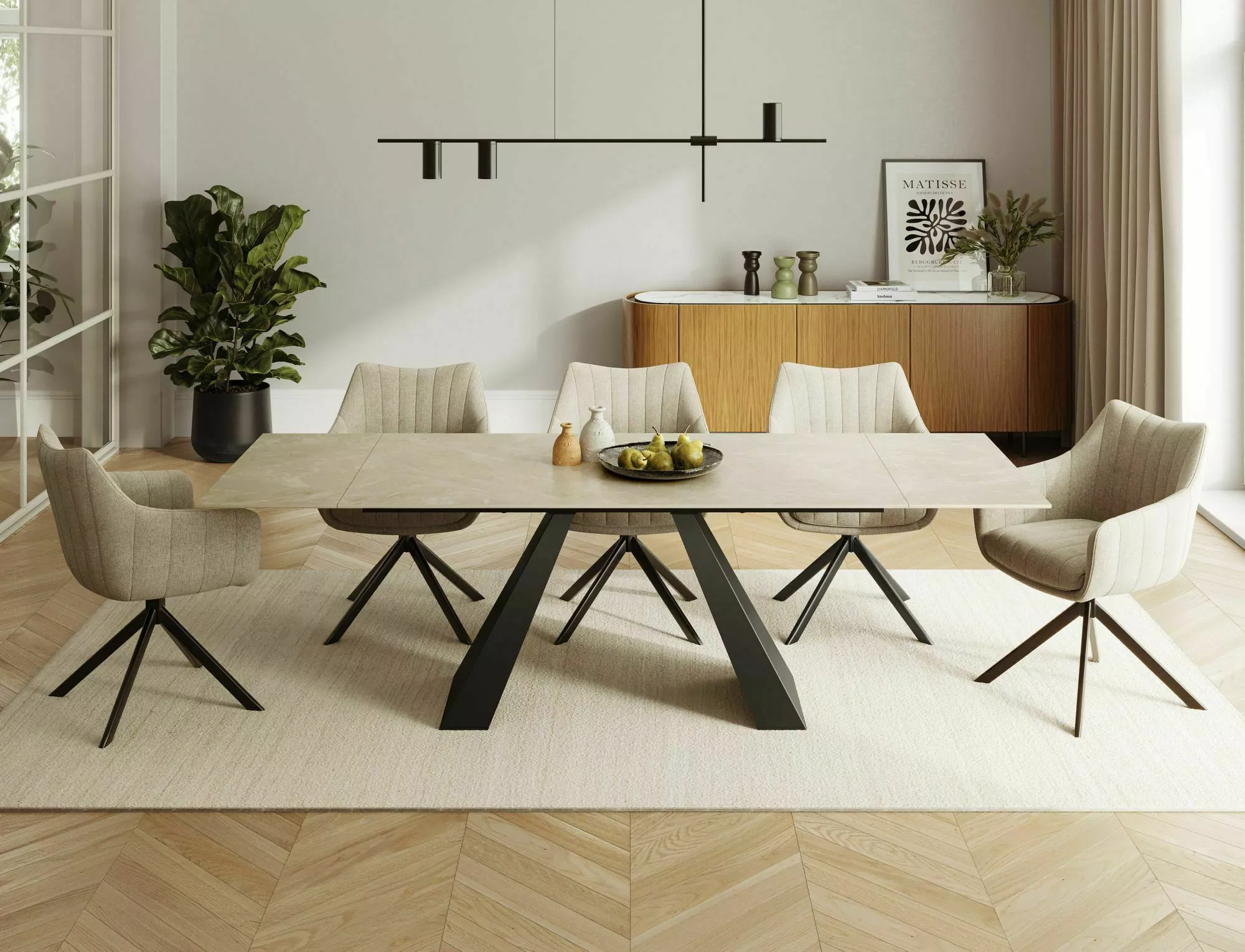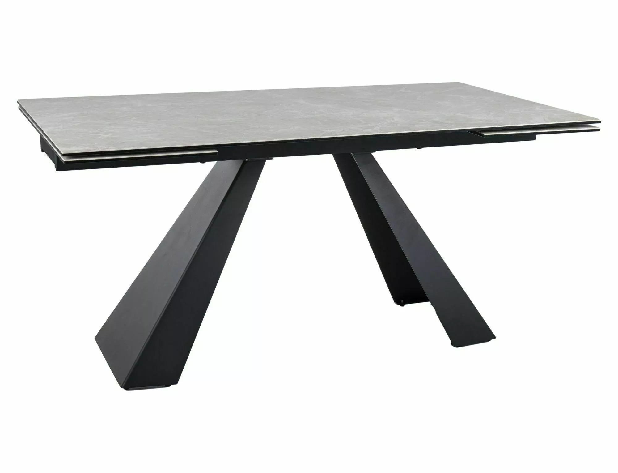 Pikendatav laud, pealispind: karastatud klaas + DIAMOND CREAM keraamika, raam: metall, värvus: kreemjas matt / must matt.