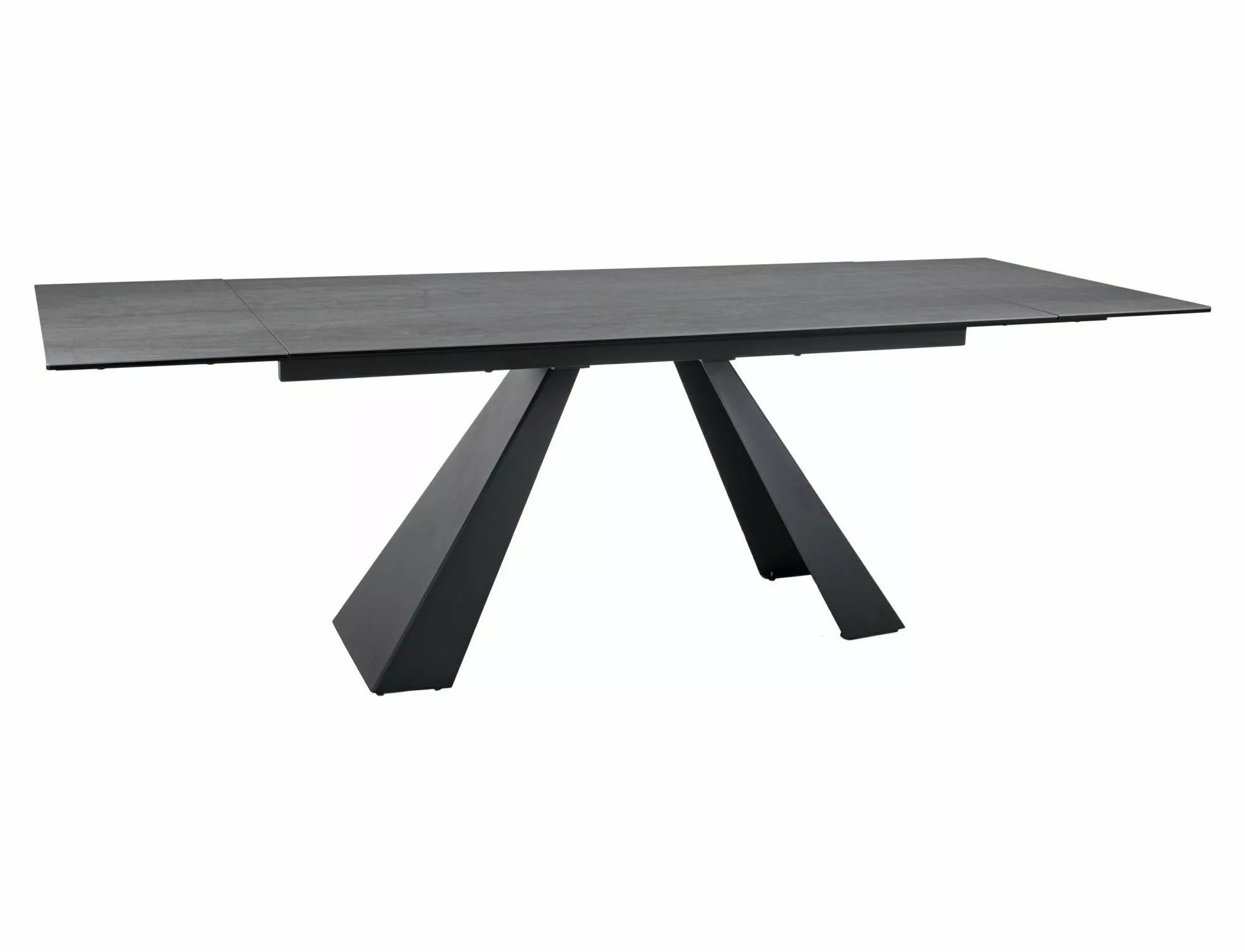 Pikendatav laud, pealispind: karastatud klaas + PIETRA DI SAVOIA keraamika, raam: metall, värvus: helehall matt / must matt.