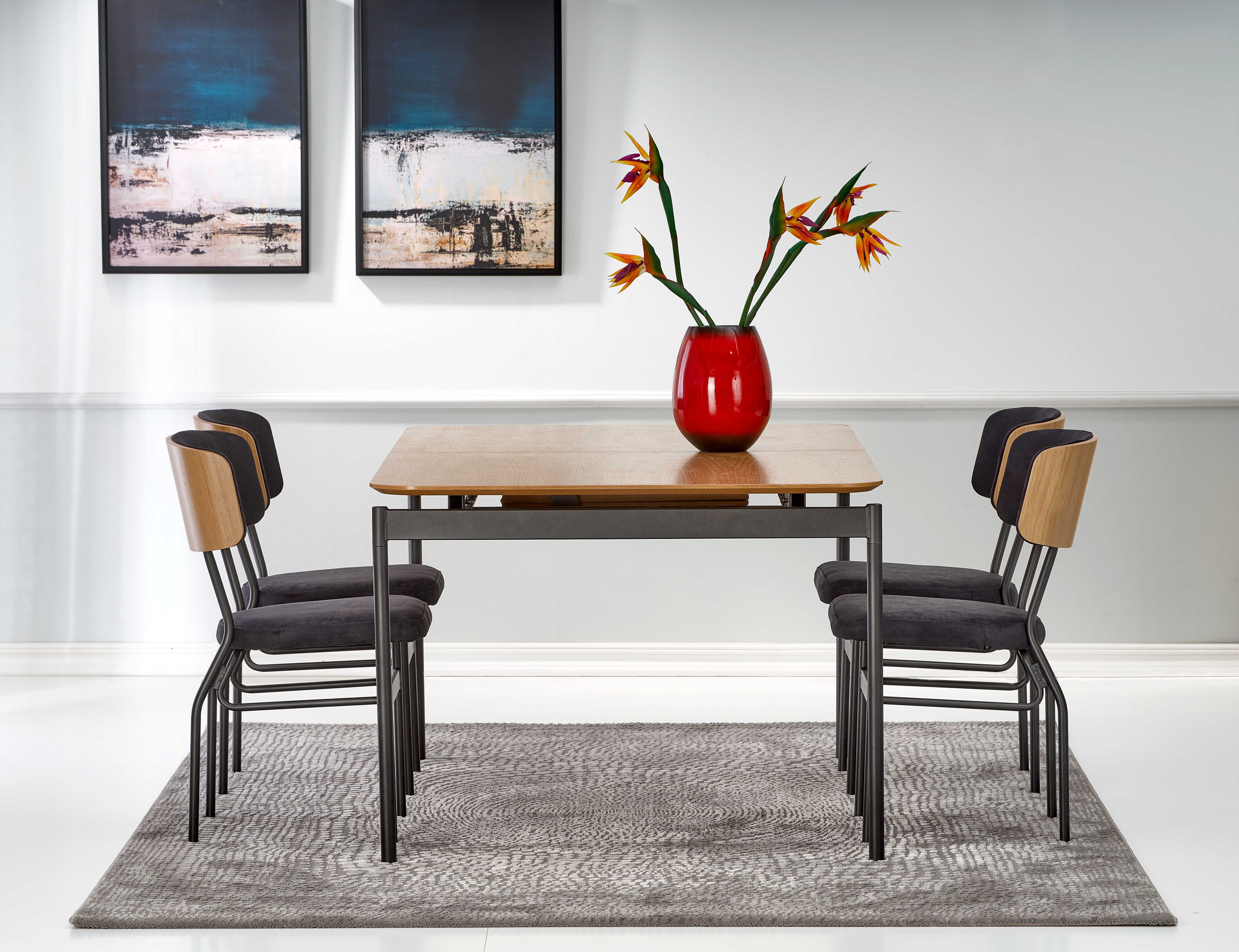 laud, mõõdud: 170÷250/100/76 cm, materjal: MDF + naturaalne tamme vinner / puitlaastplaat + naturaalne tamme vinner / pulbervärvitud teras, värvus: naturaalne tamm / must
