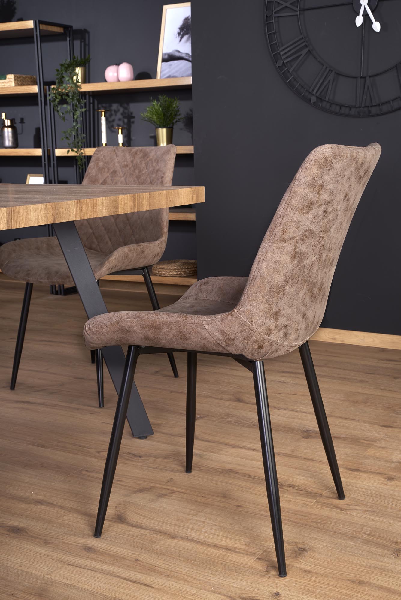 mõõdud: 160÷220/90/76 cm, pikenduslaud, materjal: lamineeritud MDF / pulbervärvitud teras, värvus: pealispind – pähkel, jalad – must. Kui vedelik on lauaplaadile sattunud, pühkige see kohe kuivaks, et vältida vee imendumist lauale.
