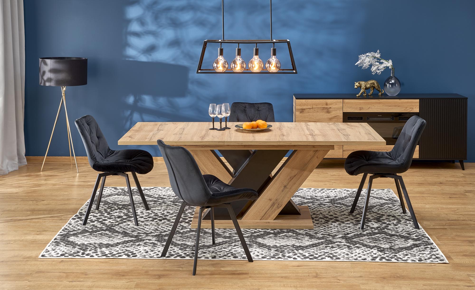 mõõdud: 160-200/90/77 cm, pikenduslaud, materjal: lamineeritud puitlaastplaat, värvus: tamm / must