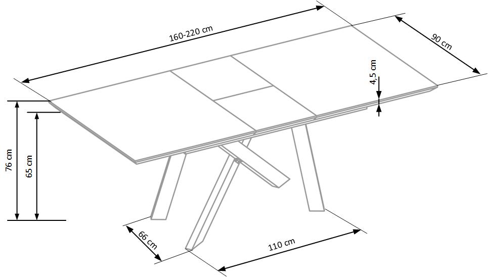 pikenduslaud, mõõdud: 160-200/90/76 cm, materjal: lamineeritud MDF / pulbervärvitud teras, värvus: kuldne tamm / must