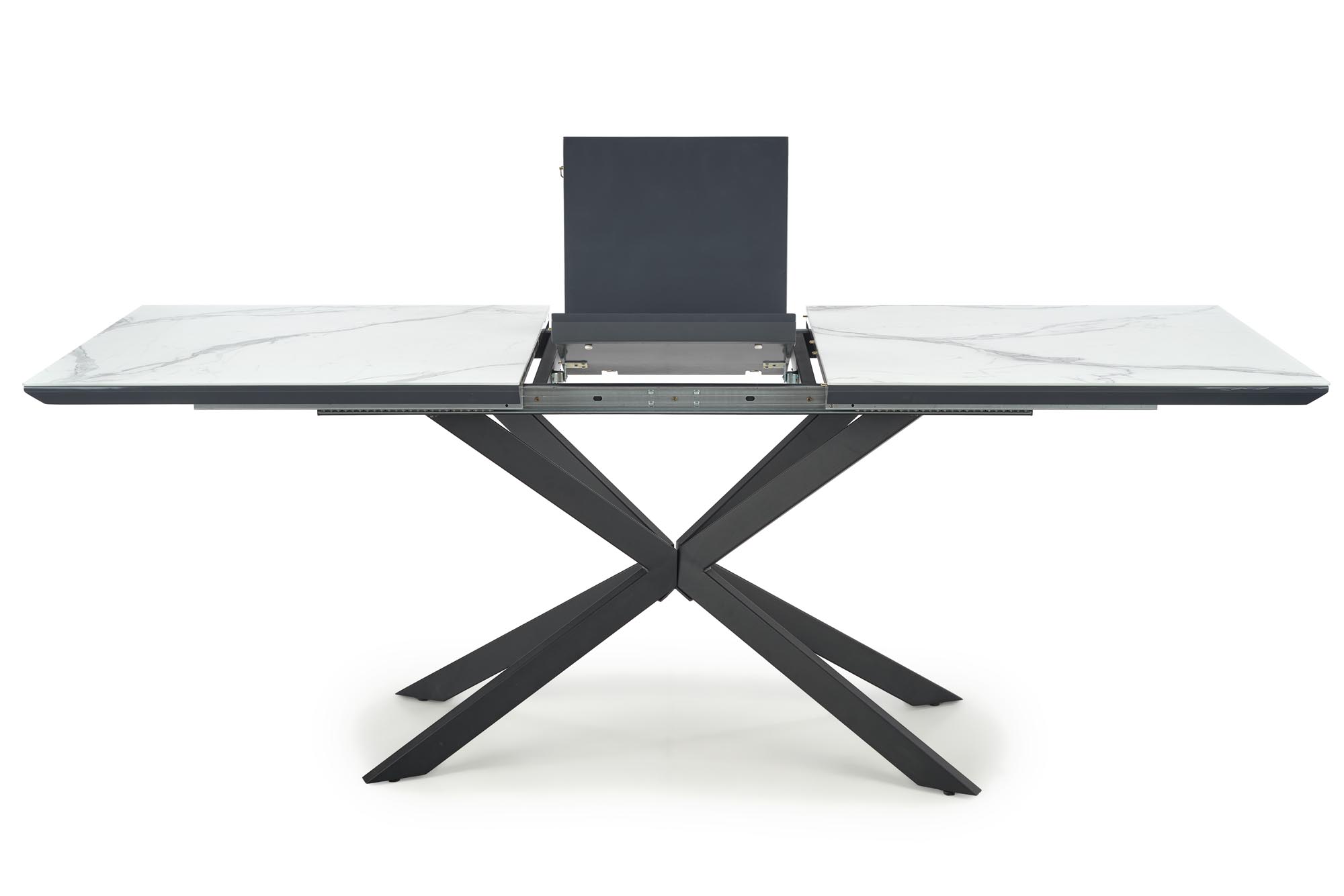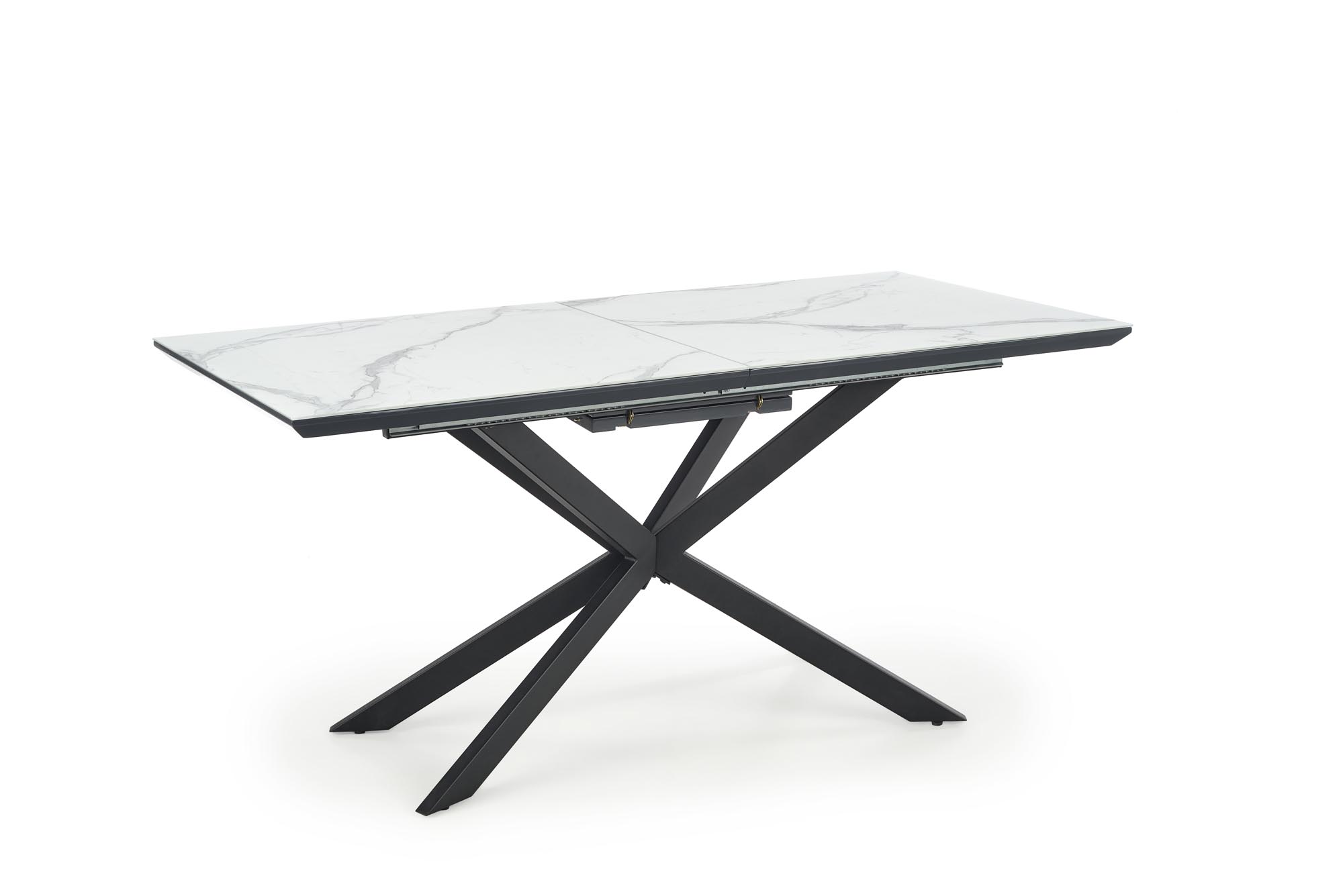pikenduslaud, mõõdud: 160-200/90/76 cm, materjal: keraamika / lakitud MDF / pulbervärvitud teras, värvus: pealispind – valge marmor / tumehall, jalad – must