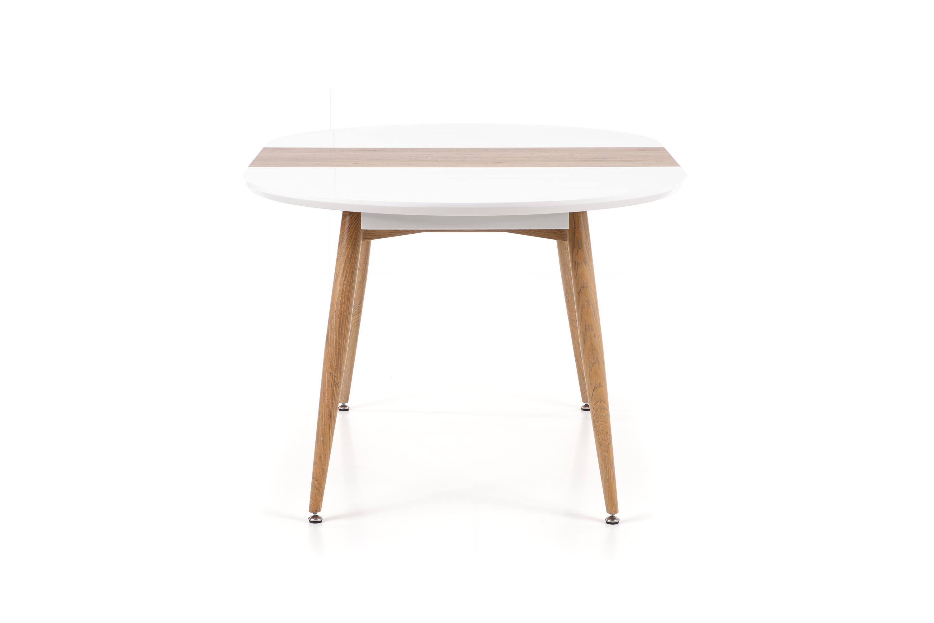 pikenduslaud, mõõdud: 120-200/100/75 cm, materjal: lakitud MDF / lamineeritud MDF / värvitud teras, värvus: valge / san remo tamm, jalad – san remo tamm