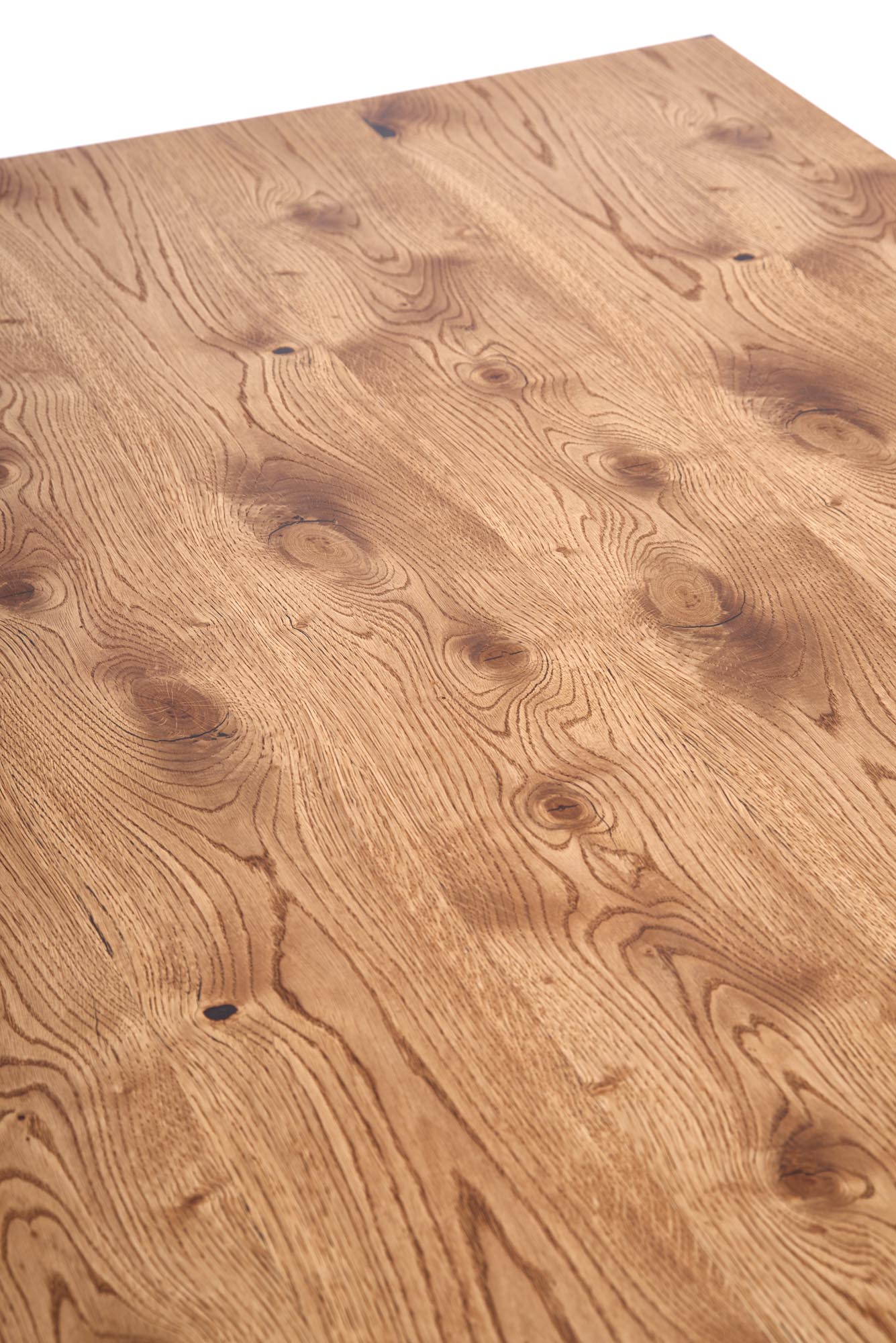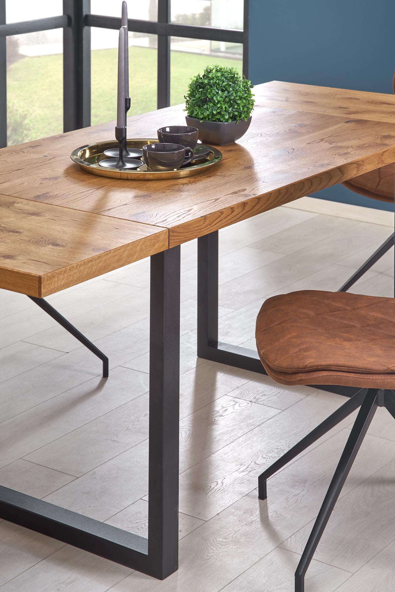 mõõdud: 126÷206/80/76 cm, pikenduslaud, materjal: pealispind – vanerplaat, servadel täispuit, jalad – pulbervärvitud teras, värvus: pealisosa – hele tamm, jalad – must