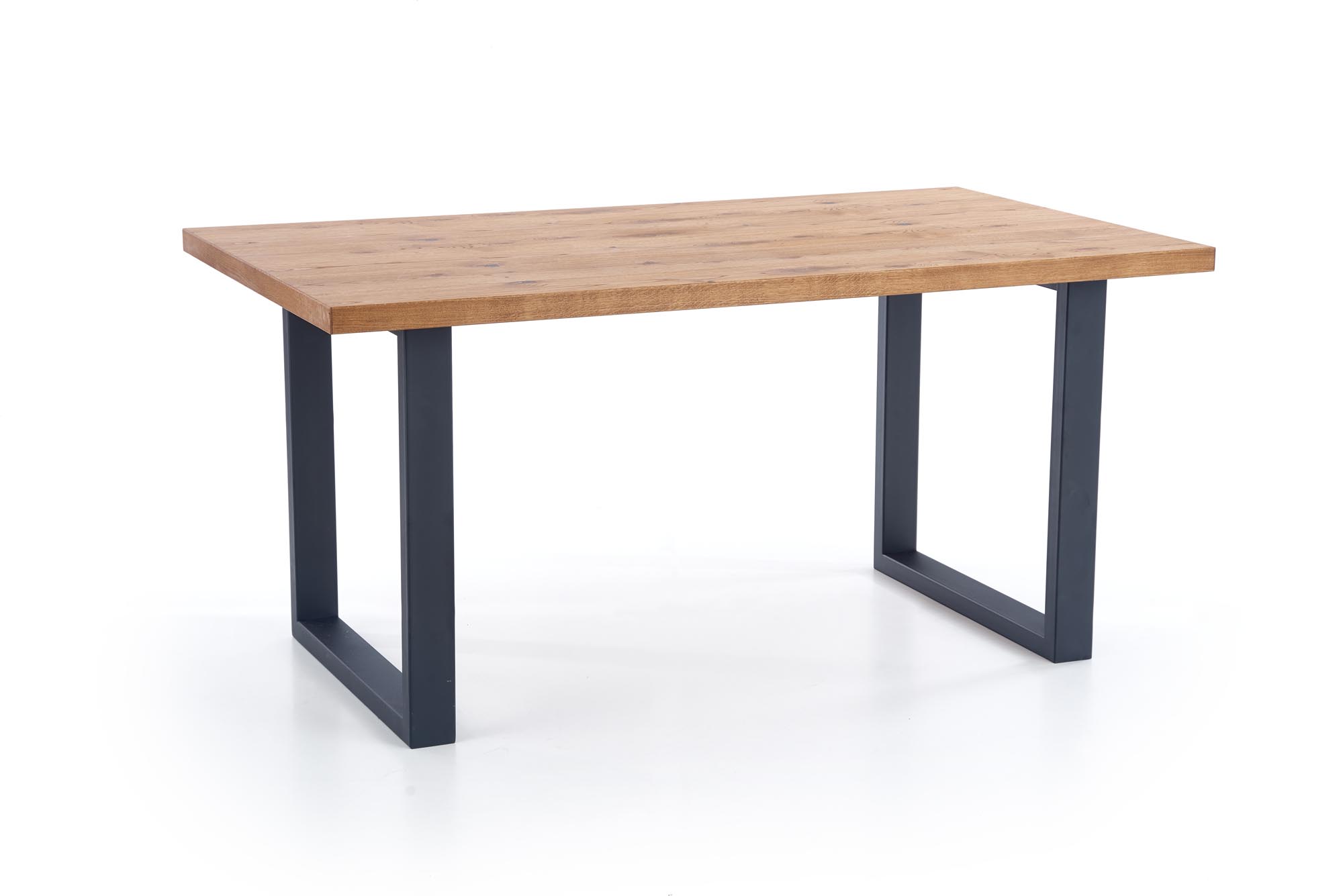 mõõdud: 160÷250/90/76 cm, pikenduslaud, materjal: pealispind – vanerplaat, servadel täispuit, jalad – pulbervärvitud teras, värvus: pealisosa – hele tamm, jalad – must