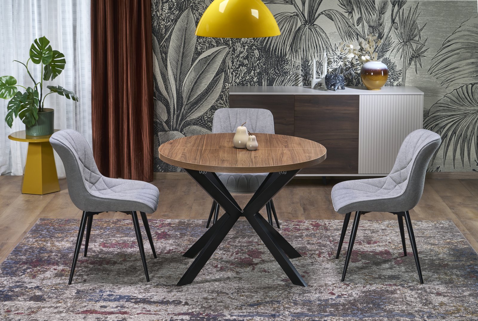 mõõdud: fi100-250/100/75 cm, pikenduslaud, materjal: lamineeritud puitlaastplaat / pulbervärvitud teras, värvus: pähkel / must