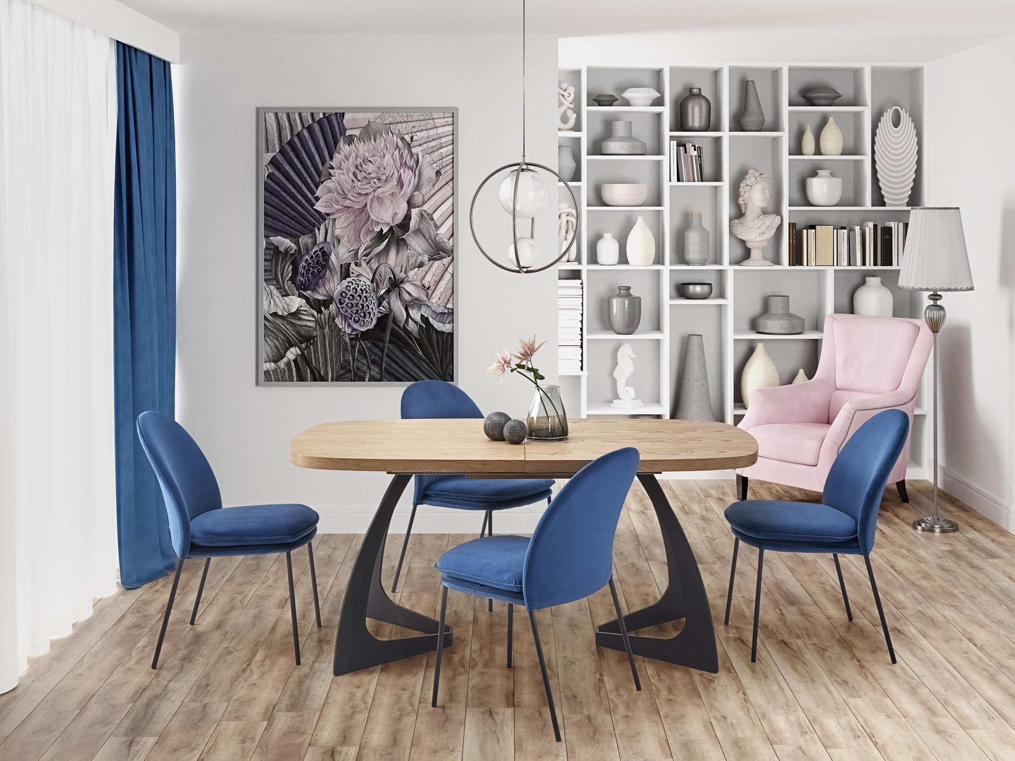 pikenduslaud, mõõdud: 160-200/90/75 cm,materjal: MDF + naturaalne spoon/pulbervärvitud teras, värvus: pealispind – naturaalne tamm, jalad – must